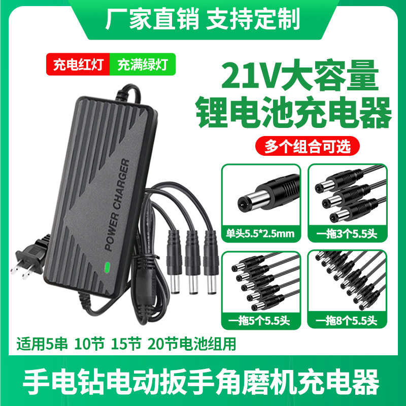マルチヘッド21vリチウム電池充電器1a2a18650平押しリチウム電気ドリル定電流定電圧変換ランプ電源アダプタ