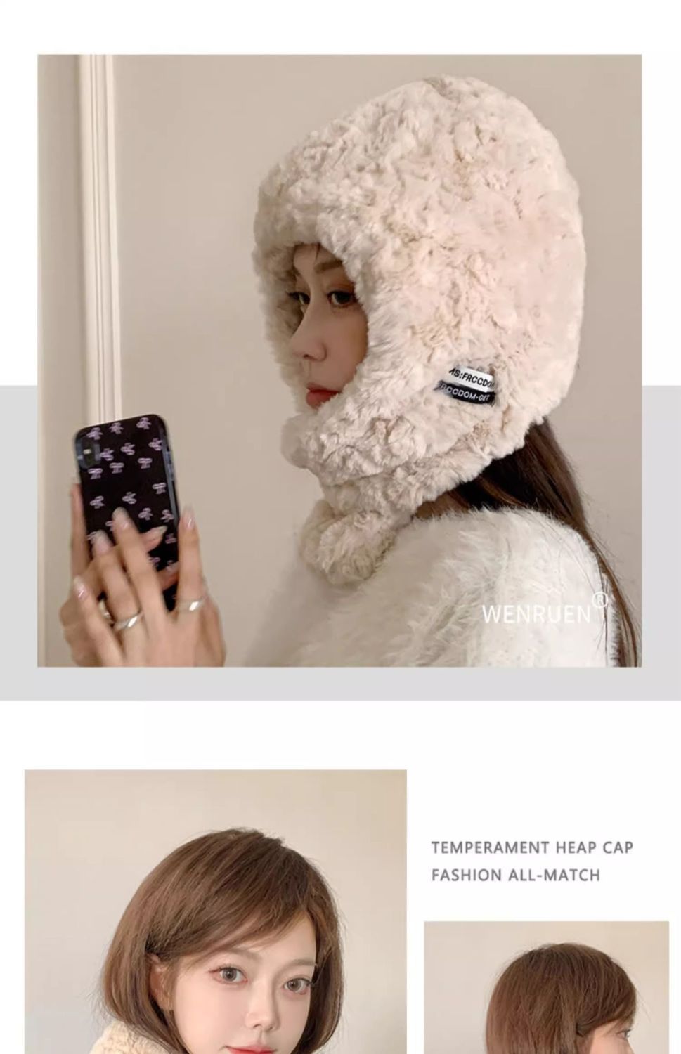 かわいいベアー帽子マフラー一体女性冬耳雷鋒帽ぬいぐるみ自転車保温スキー