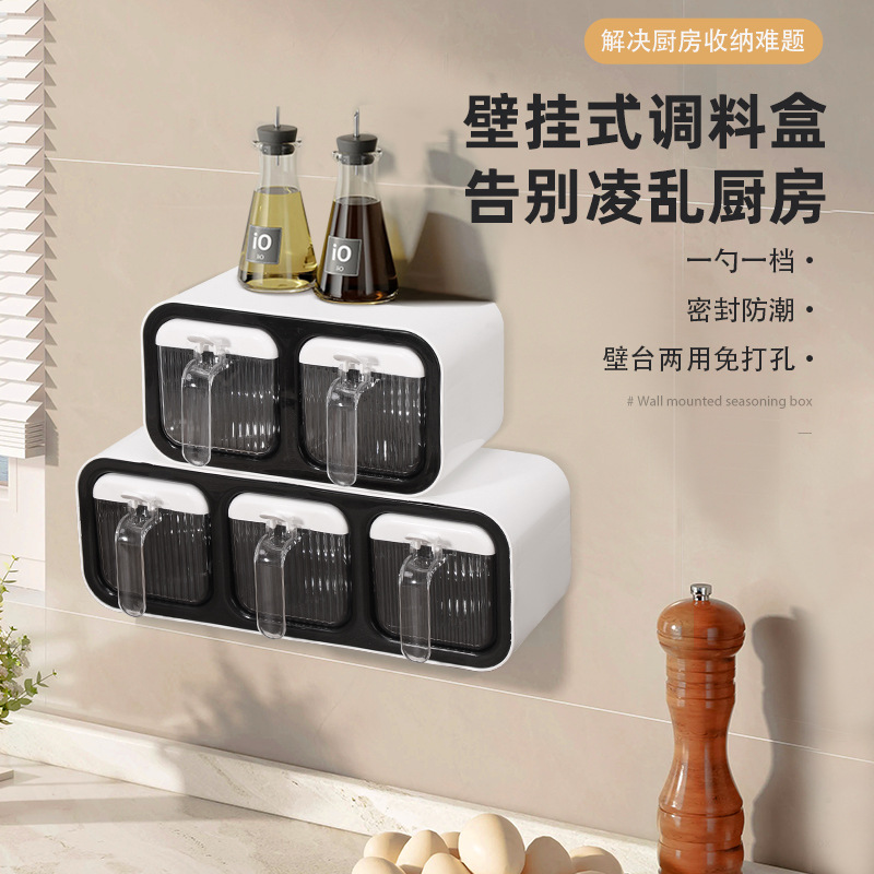 家庭用キッチン多機能壁掛け式釘不要多格収納塩・調味料ボトル・塩入れ・壁掛け調味料ボックス・調味料ボトル