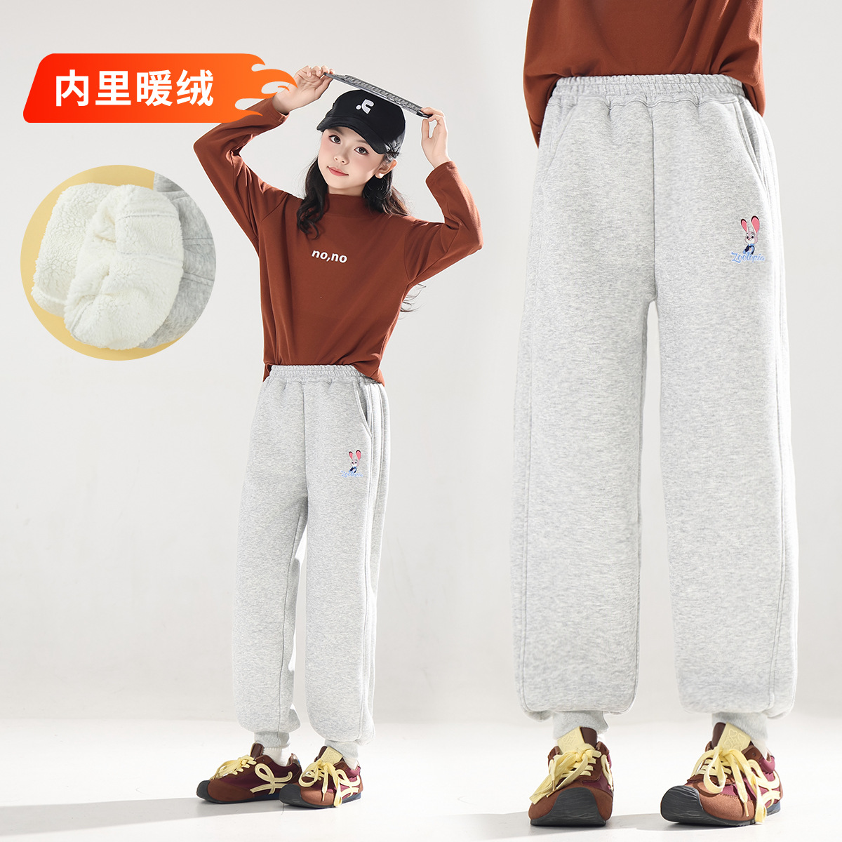 兔子警官松弛感女童阔腿裤25冬款中大童加绒长裤舒适百搭休闲裤