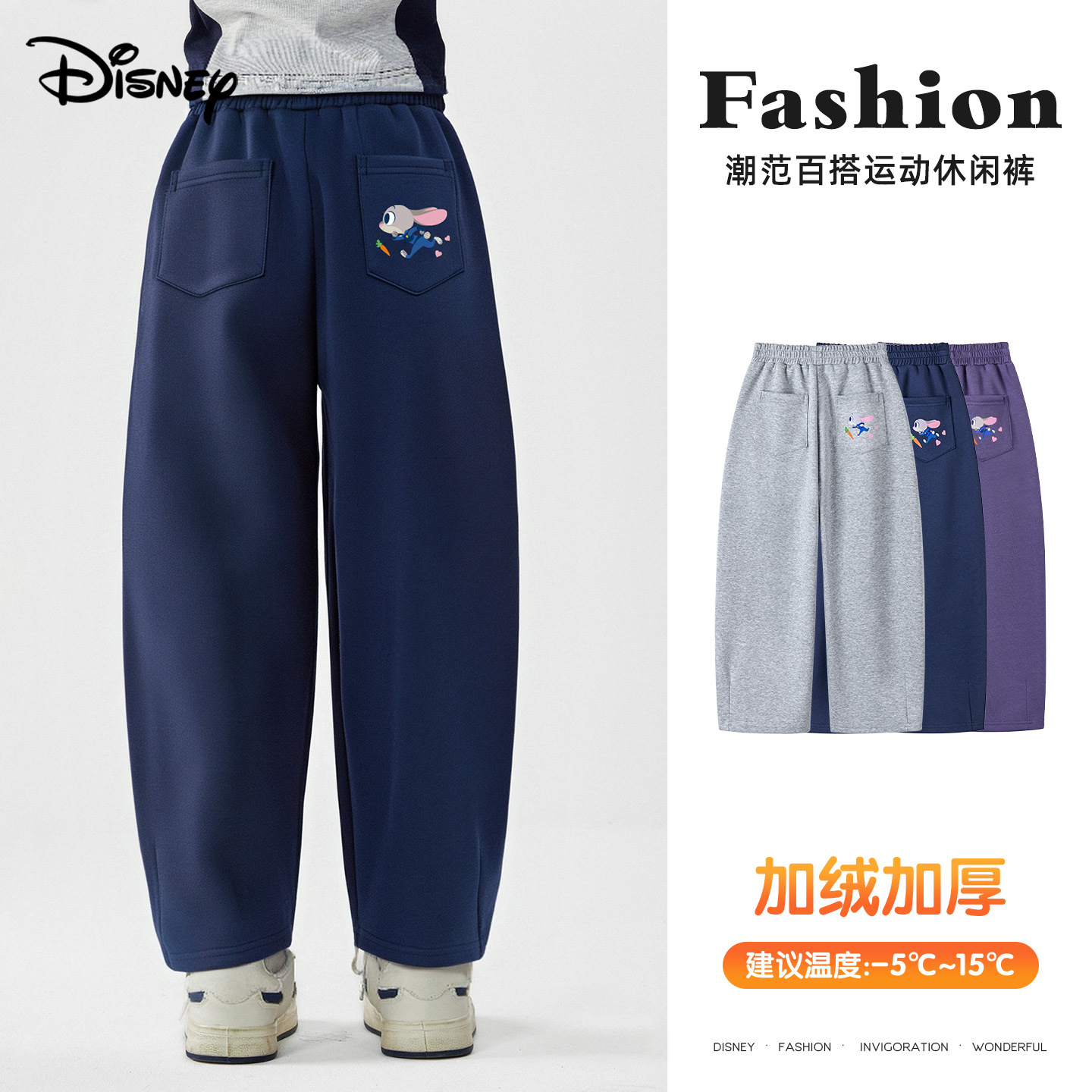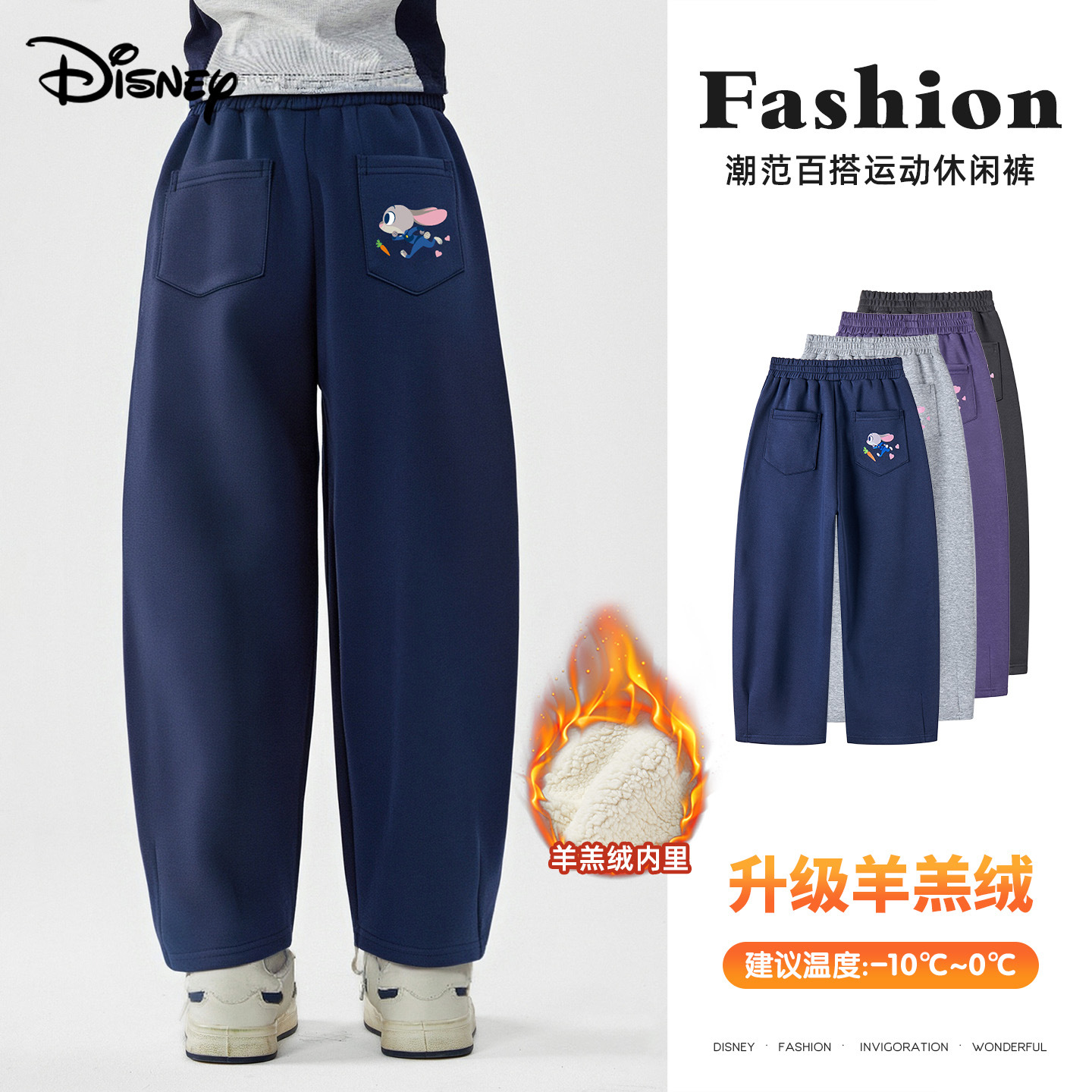 兔子警官休闲卫裤2025年冬季新款女童加绒阔腿裤韩版百搭运动裤