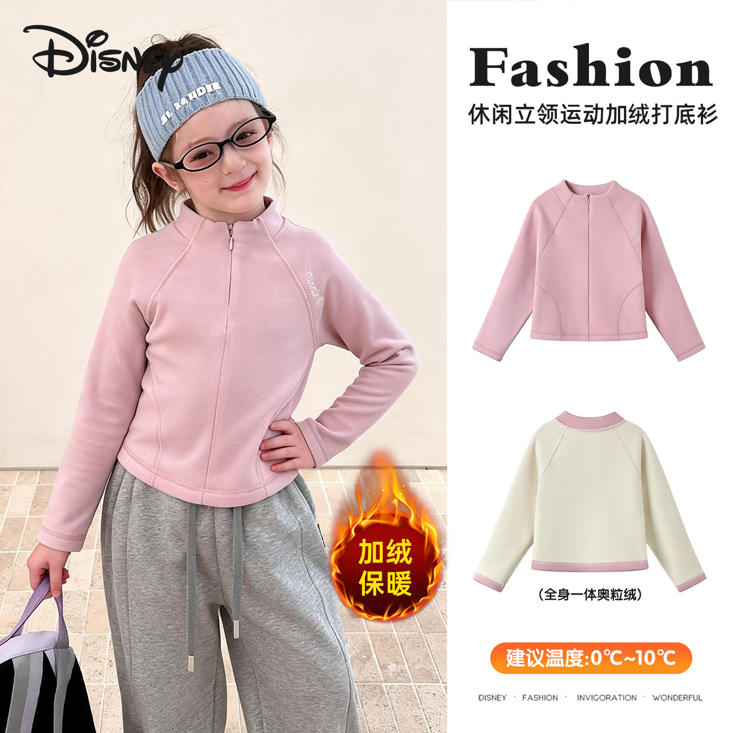 休闲立领女童加绒卫衣25冬中大童时尚百搭校园运动插肩袖打底衫