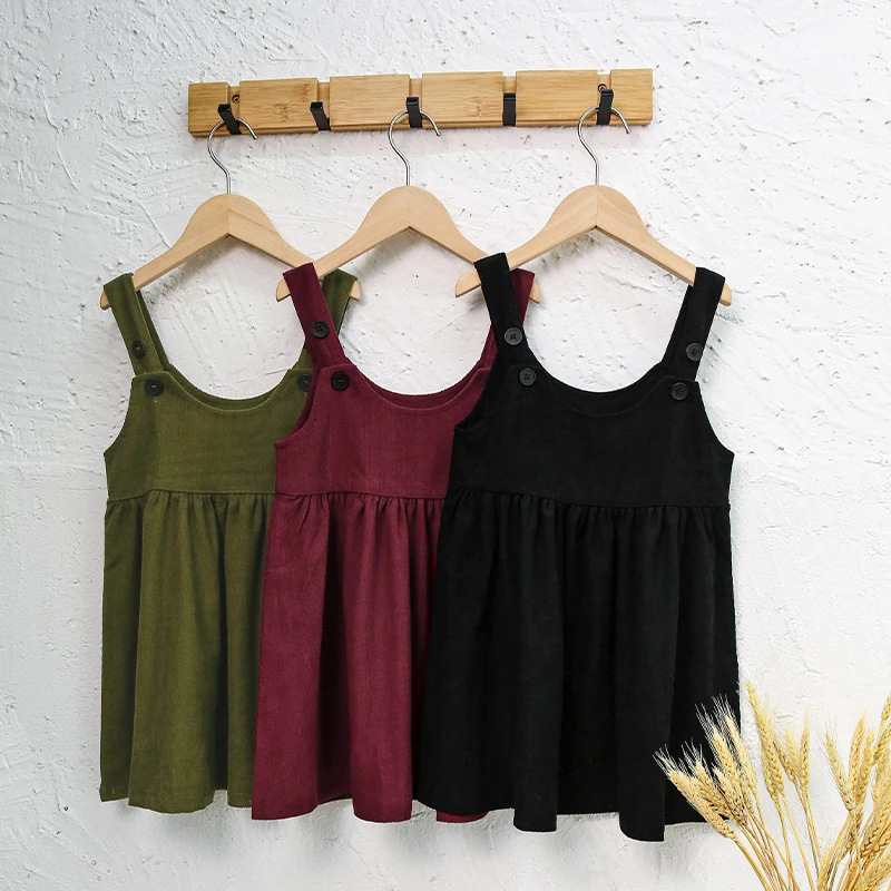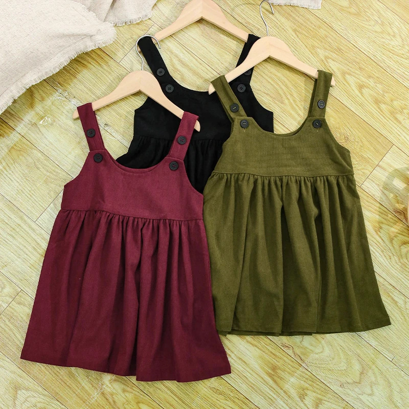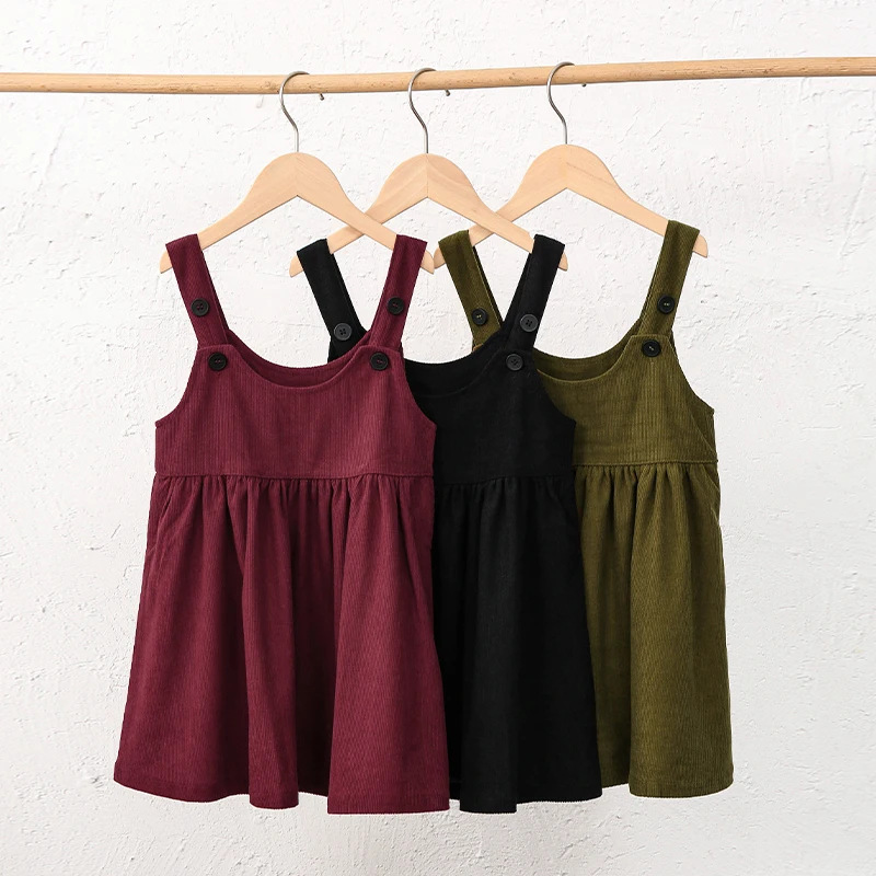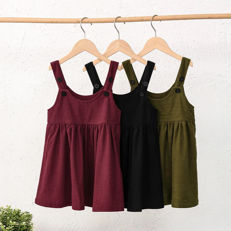 海外貿易専用子供服コーデュロイベストワンピース女の子用重ね着ノースリーブワンピースコーデュロイ可愛いおしゃれサスペンダースカート