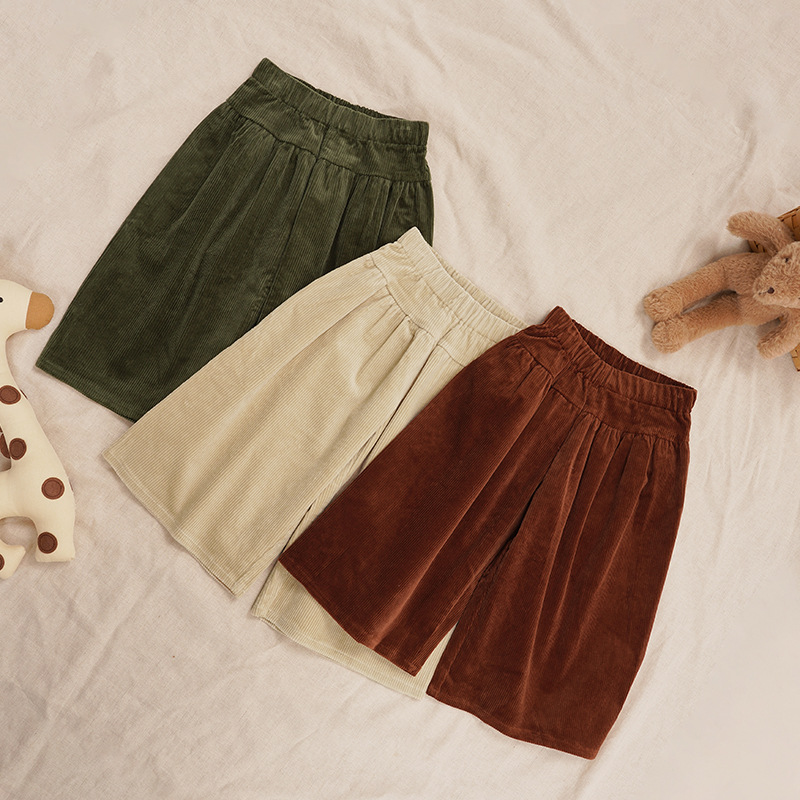 26秋冬北欧风童装保暖阔腿长裤休闲百搭灯芯绒松紧腰长裤男女宝宝