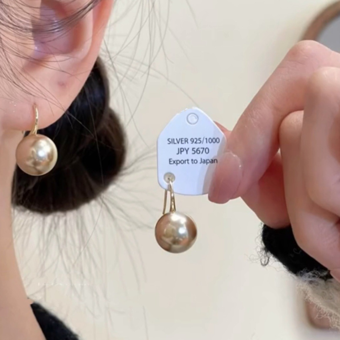 美ラードシャンパン色真珠ピアスs925銀針気質真珠イヤリング