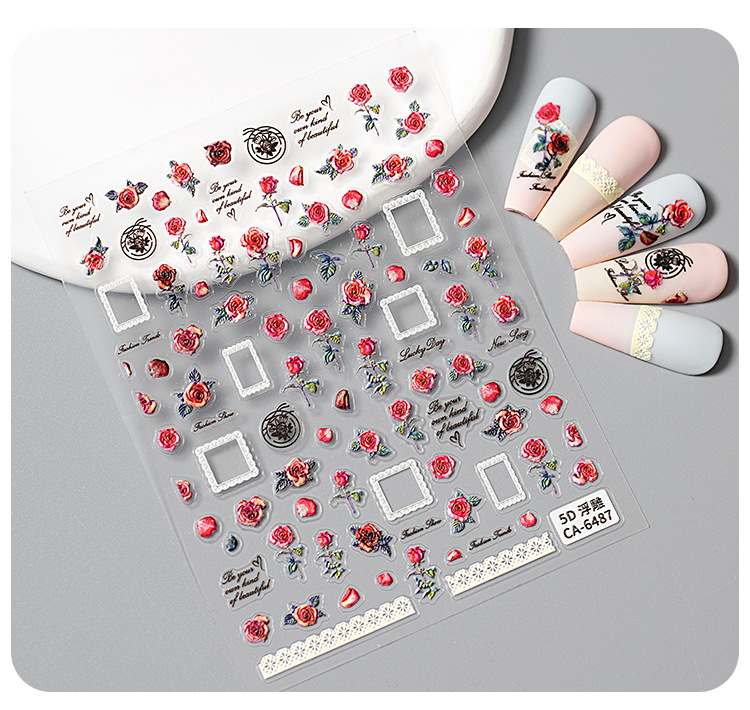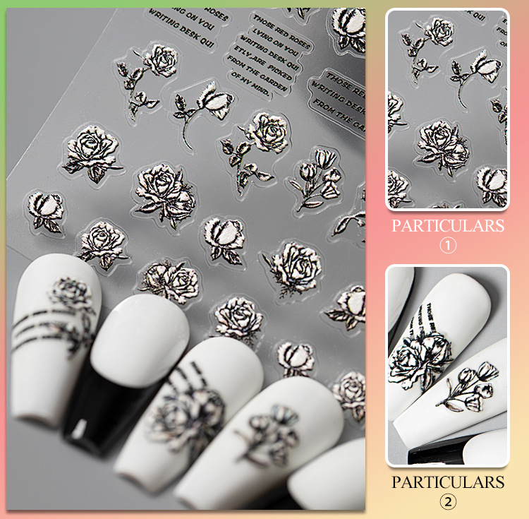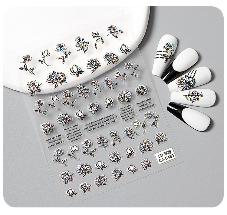 ネイルアートステッカーシリーズ、レリーフマイクロカービング、フラットインターネットセレブと同じスタイルのネイルアートステッカーデカール、写真付き、大量注文可能、価格優良