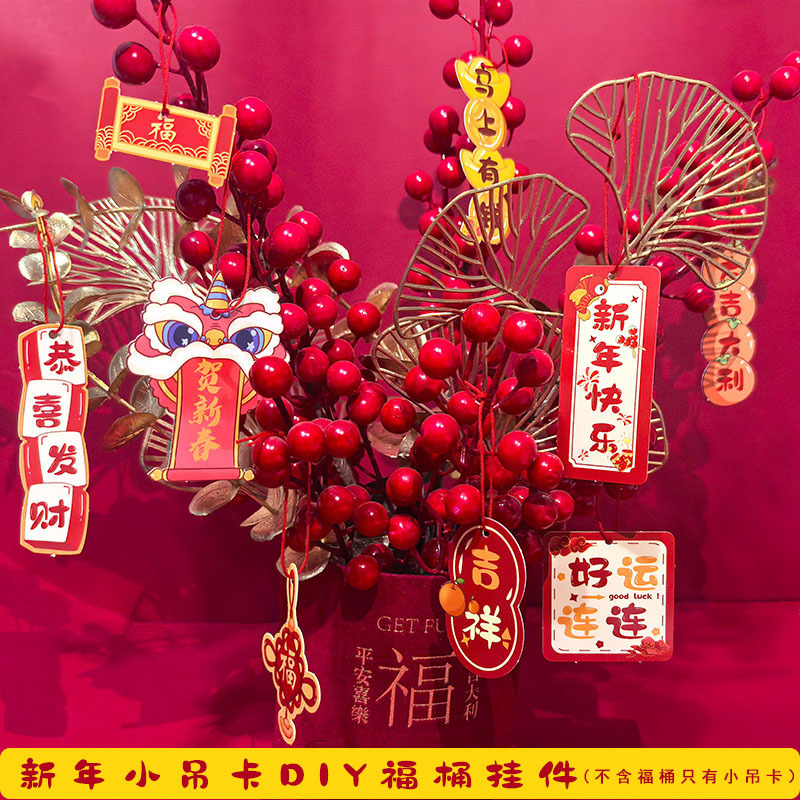 新年吊卡福字节日挂卡diy新春装饰配件发财树福桶春节装饰小吊卡