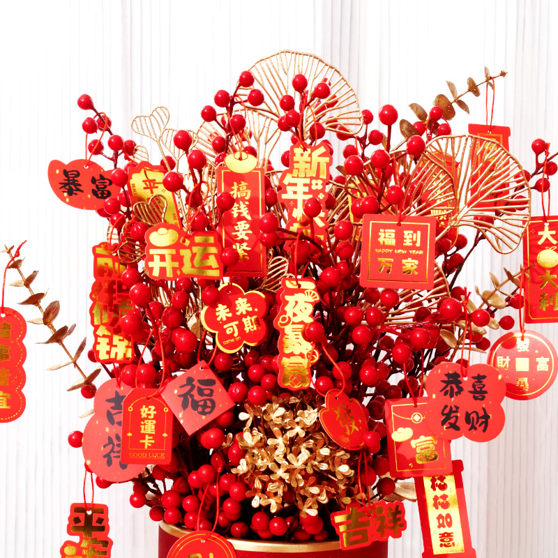 马年新年吊卡diy盆景福筒发财果装饰小卡片批发春节新春装饰挂件