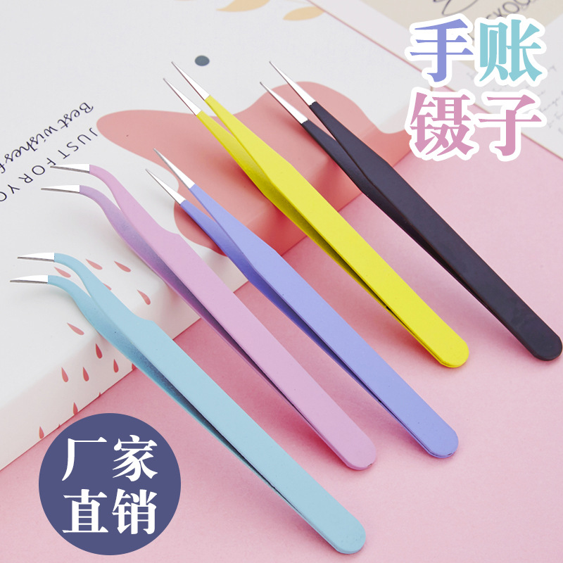 カラーマカロン手帳ピンセットカラー厚ステンレス製ストレートヘッドエルボー手作り紙クリップ学生ピンセット卸売り