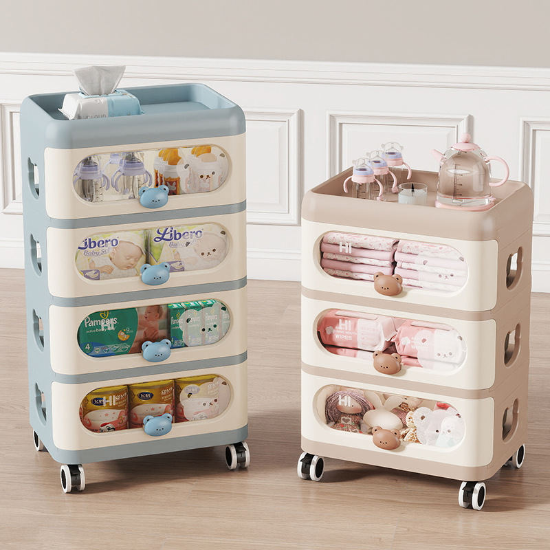 客間多層移動カート漫画赤ちゃん収納キャビネット家庭用スナック棚引き出し式ロッカー