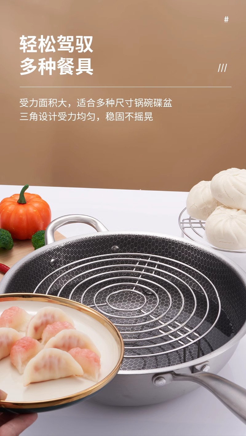 304ステンレス三角蒸し棚非磁性鍋棚高脚三脚蒸し棚棚多機能隔水蒸し棚