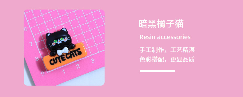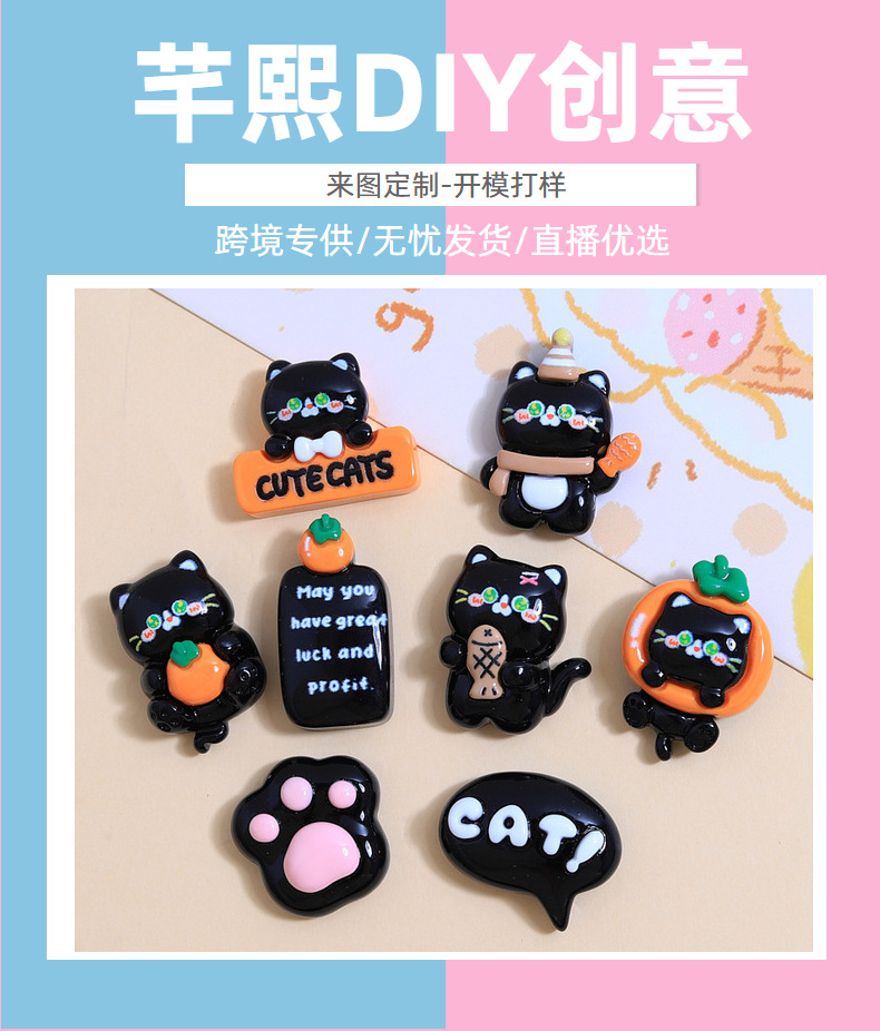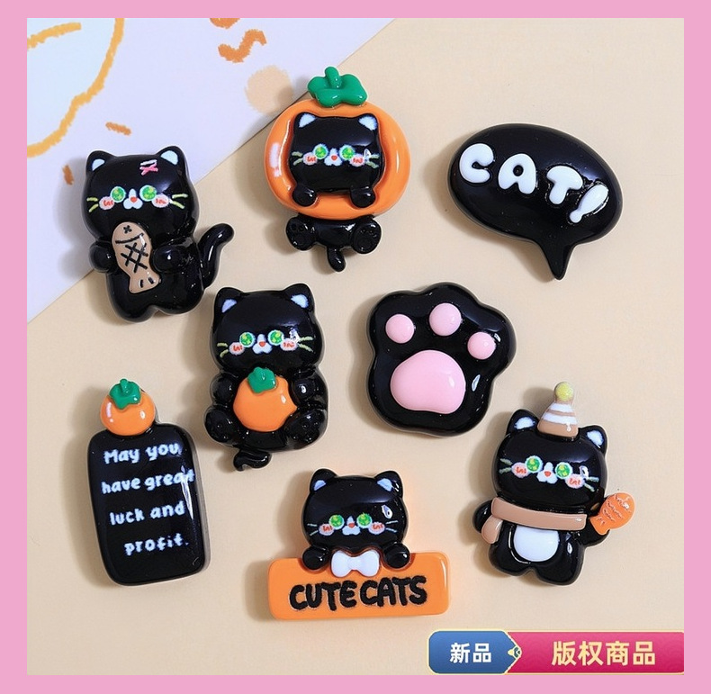 创意小黑猫卡通diy树脂饰品奶油胶配饰创意鞋扣发夹立体贴材料