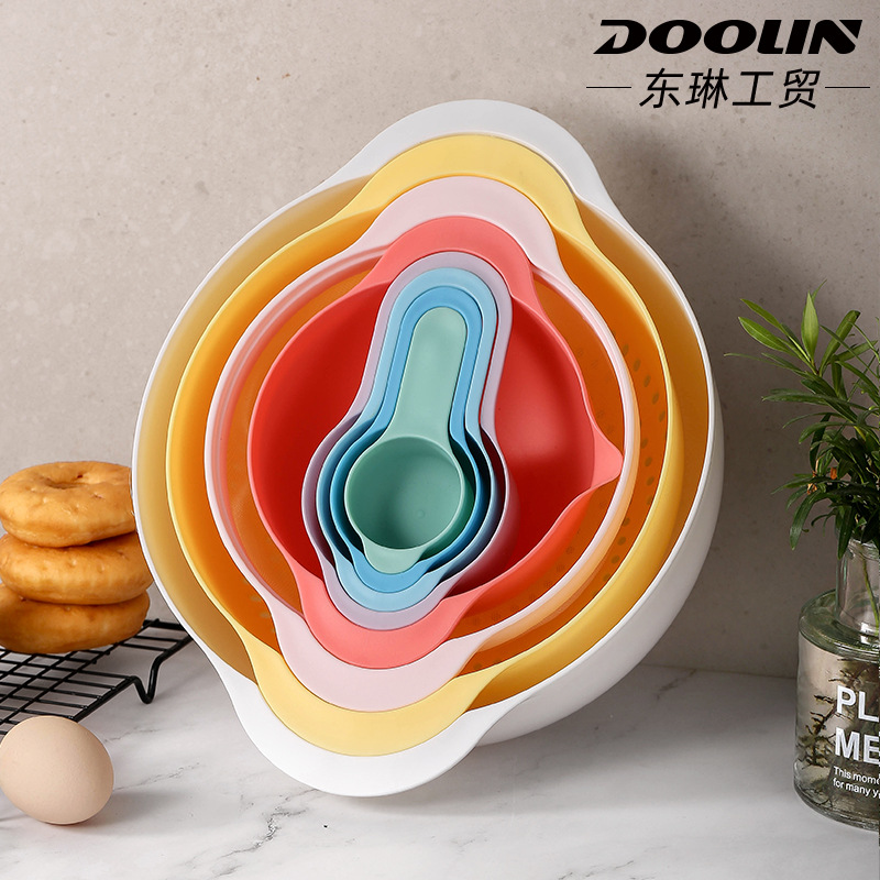 多機能レインボーボウル8点セット計量カップ計量スプーン計量皿セット小麦粉ふるい水たまり洗濯鉢焙煎ツール