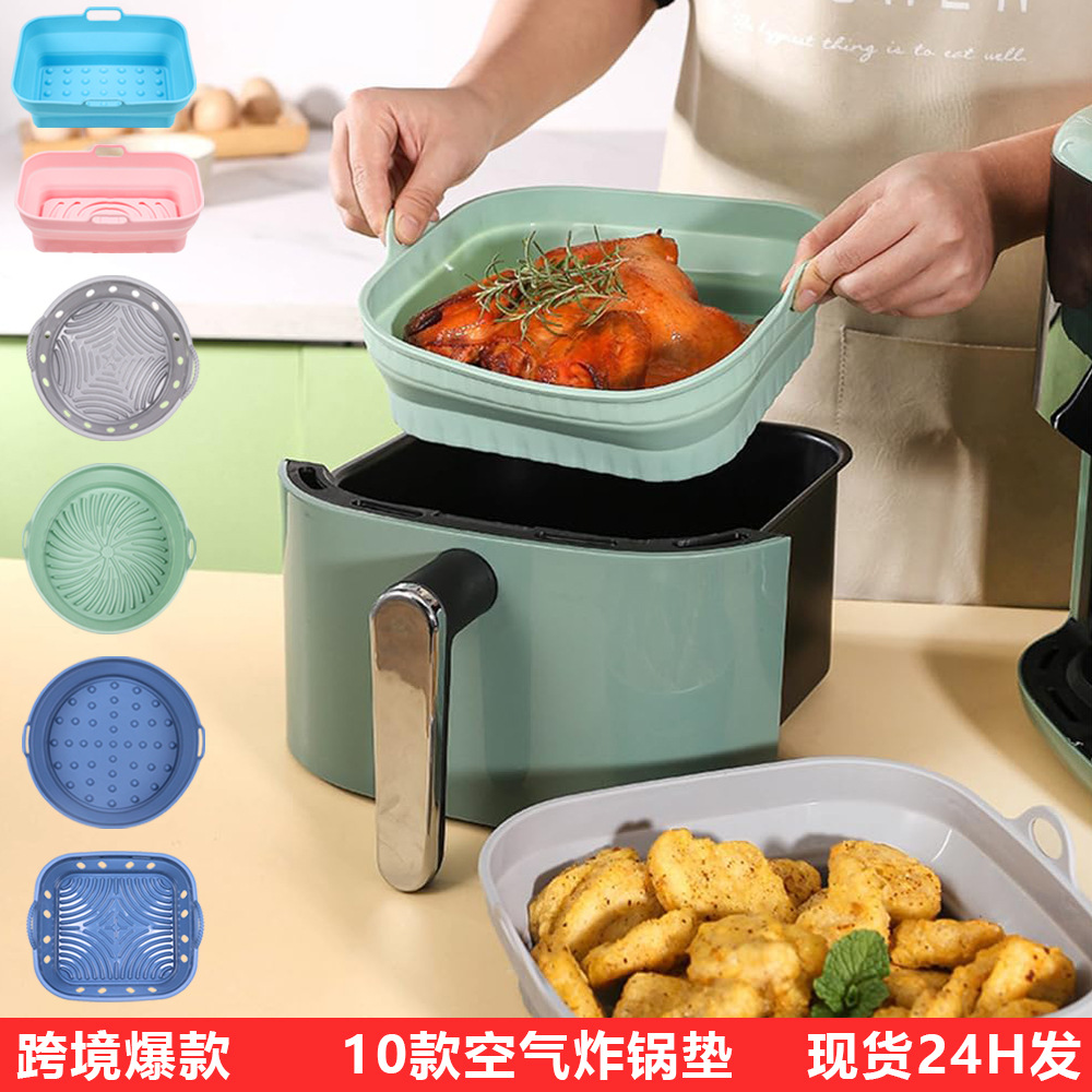エアフライヤーシリコンベーキングトレイ折りたたみトレイ家庭用高温耐性ベーキングフライヤーマット越境ホットセール