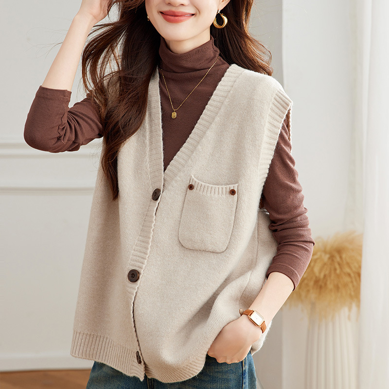 工場直販 Vネックカジュアルベスト レディース 26年新作 万能無地 軽贅沢 ノースリーブニットベスト 女性用