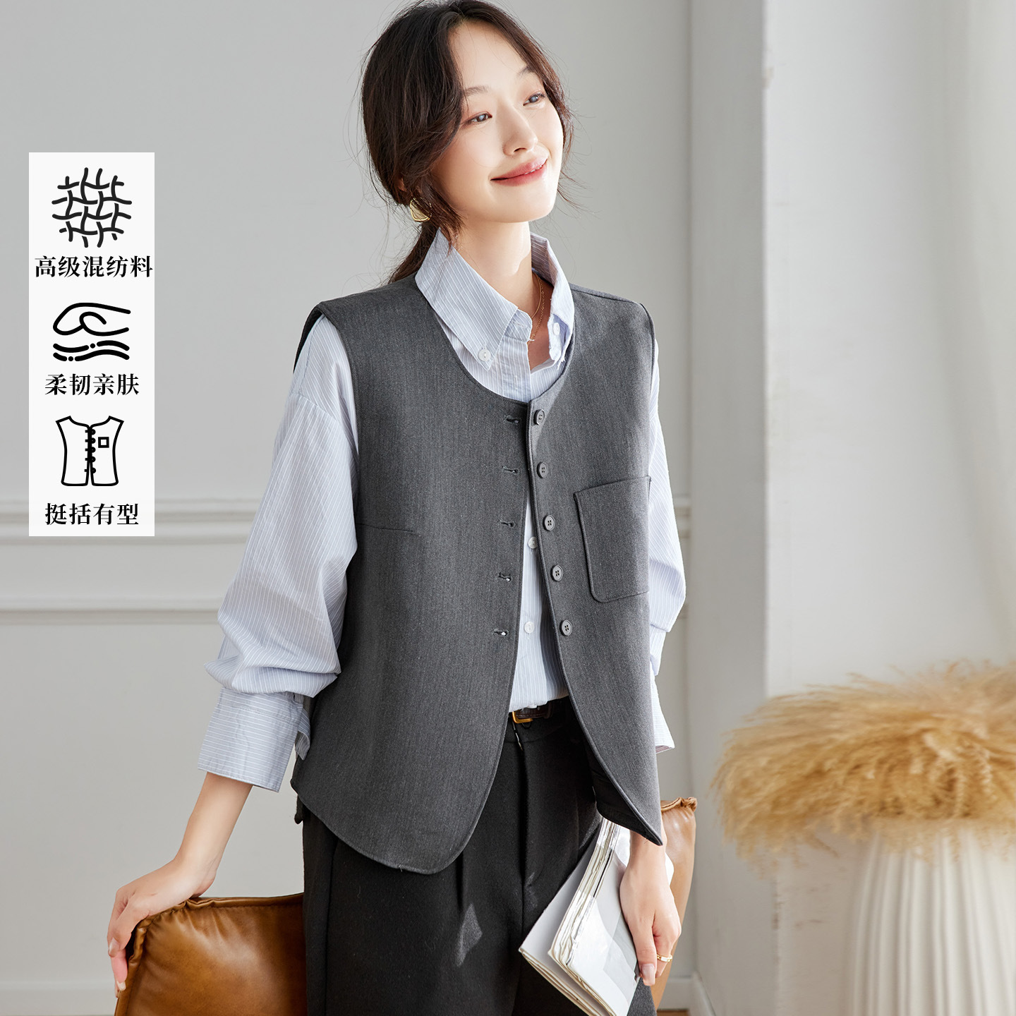 棉茧 圆领高级灰马甲女2025秋装新款无袖坎肩背心叠穿马甲开衫