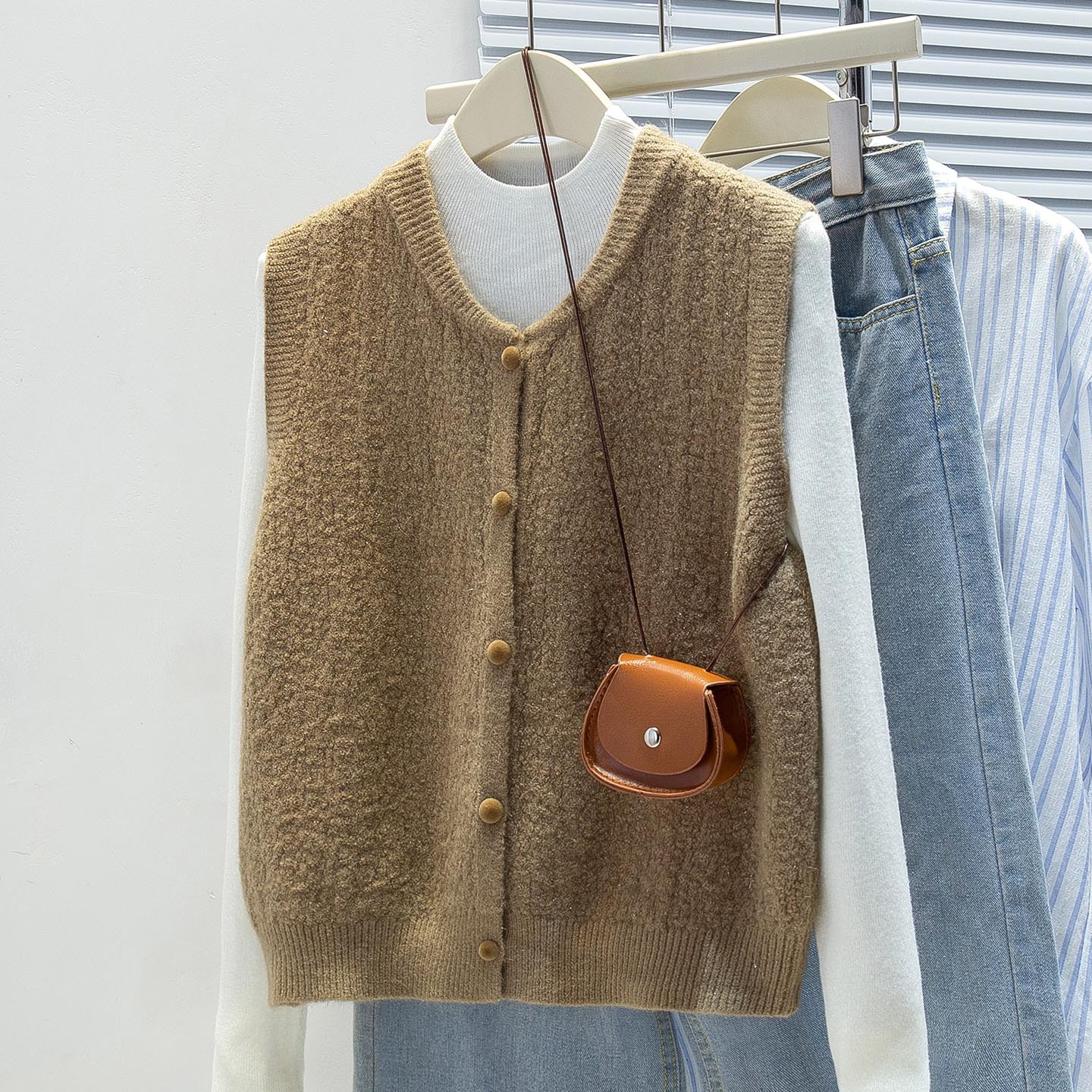 工場直販ラウンドネックノースリーブベスト2026春カーディガン重ね着ベスト秋冬レディース暖かいセーターコートニット