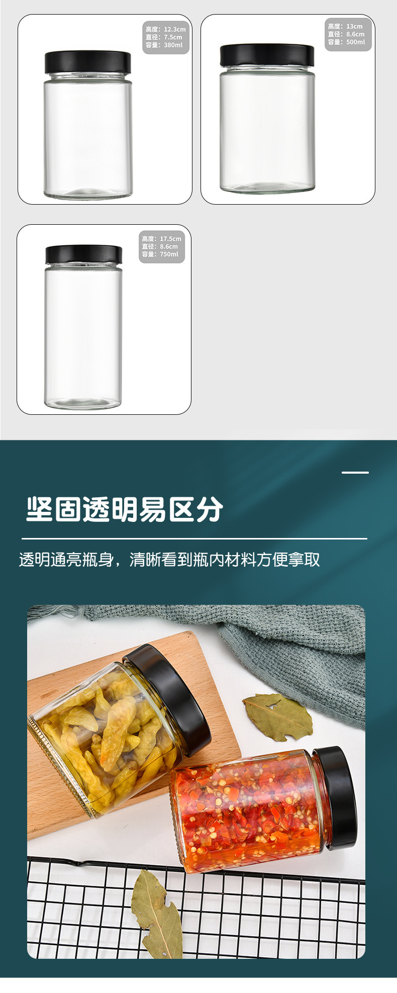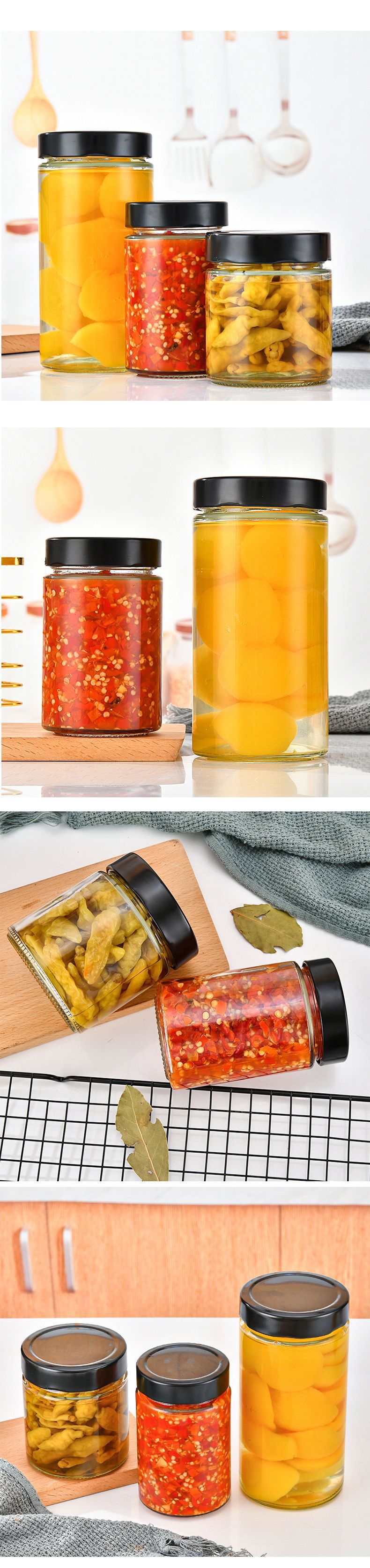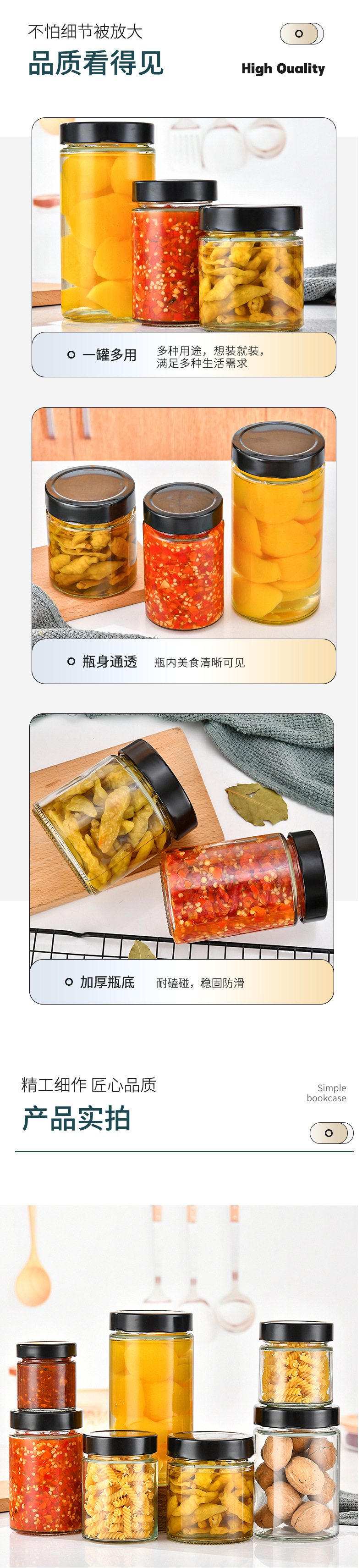 高蓋円形ガラス味噌汁瓶ストレートジャムカプサイソース瓶家庭用透明蜂蜜瓶ゴマ味噌汁瓶空瓶