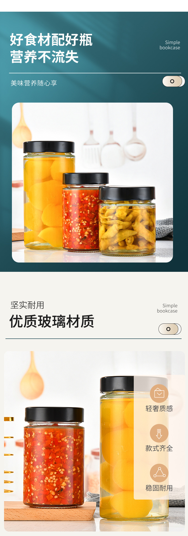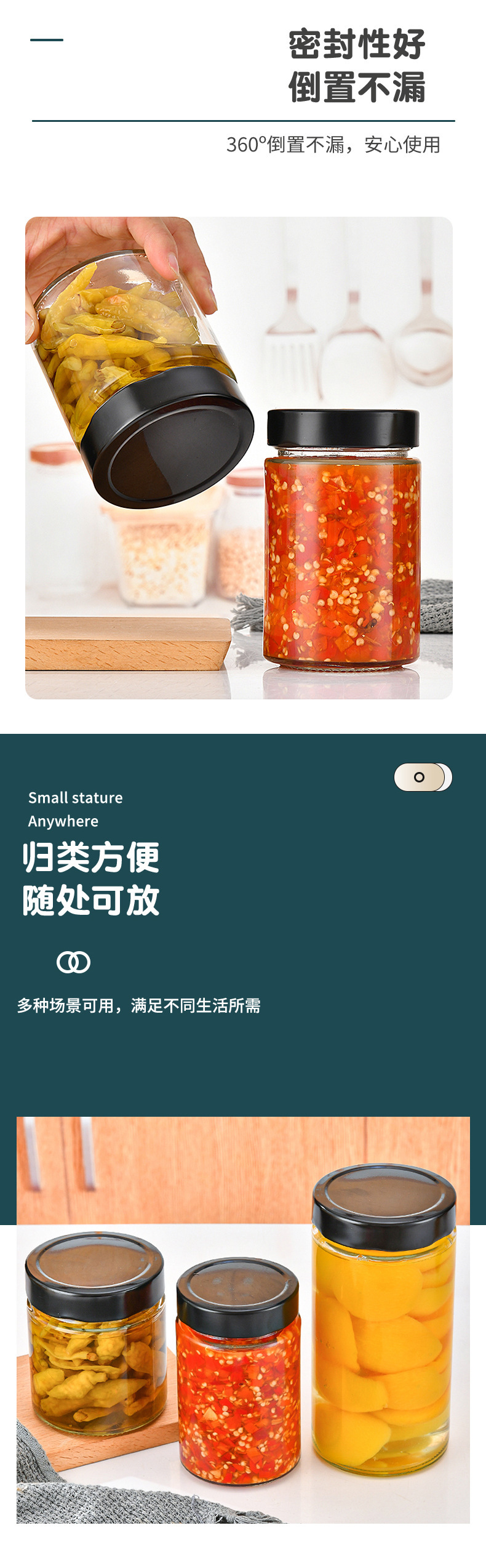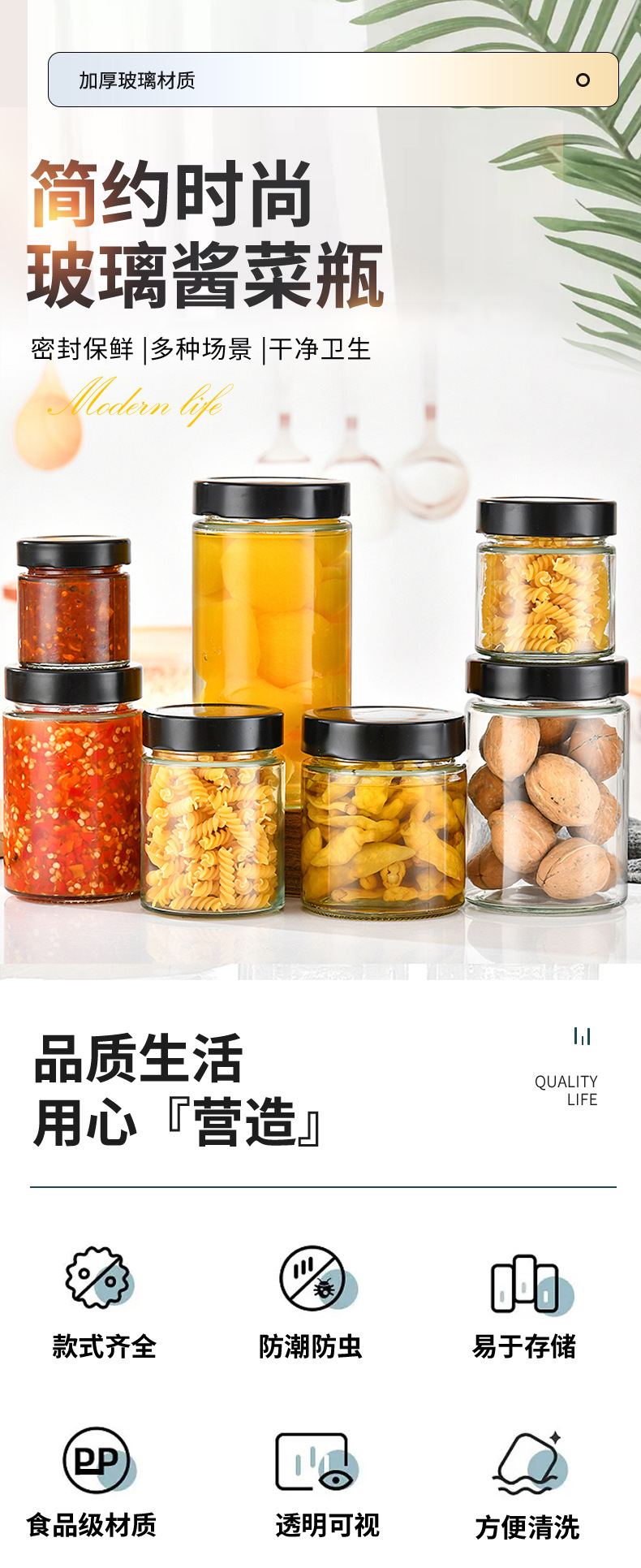 高蓋円形ガラス味噌汁瓶ストレートジャムカプサイソース瓶家庭用透明蜂蜜瓶ゴマ味噌汁瓶空瓶