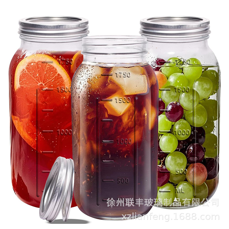 64オンスのメイソンジャー、メイソンボトル、ガラス瓶、厚めのブリキ蓋、密閉蓋、透明ガラス瓶セット、個別販売
