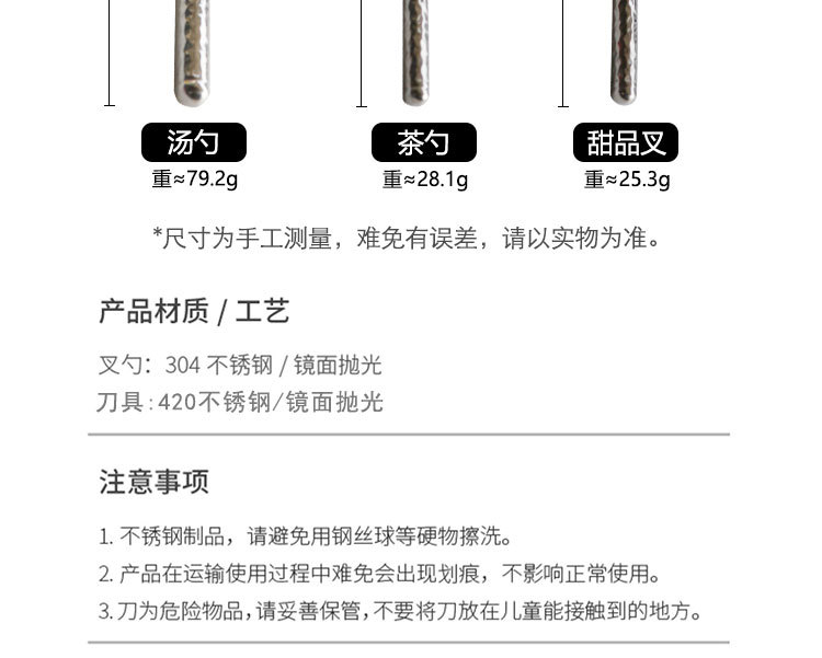 ハンマー加工の洋食器セット フランス風304ステンレス製 ステーキ用ナイフ・フォーク・スプーン3点セット 箱入り