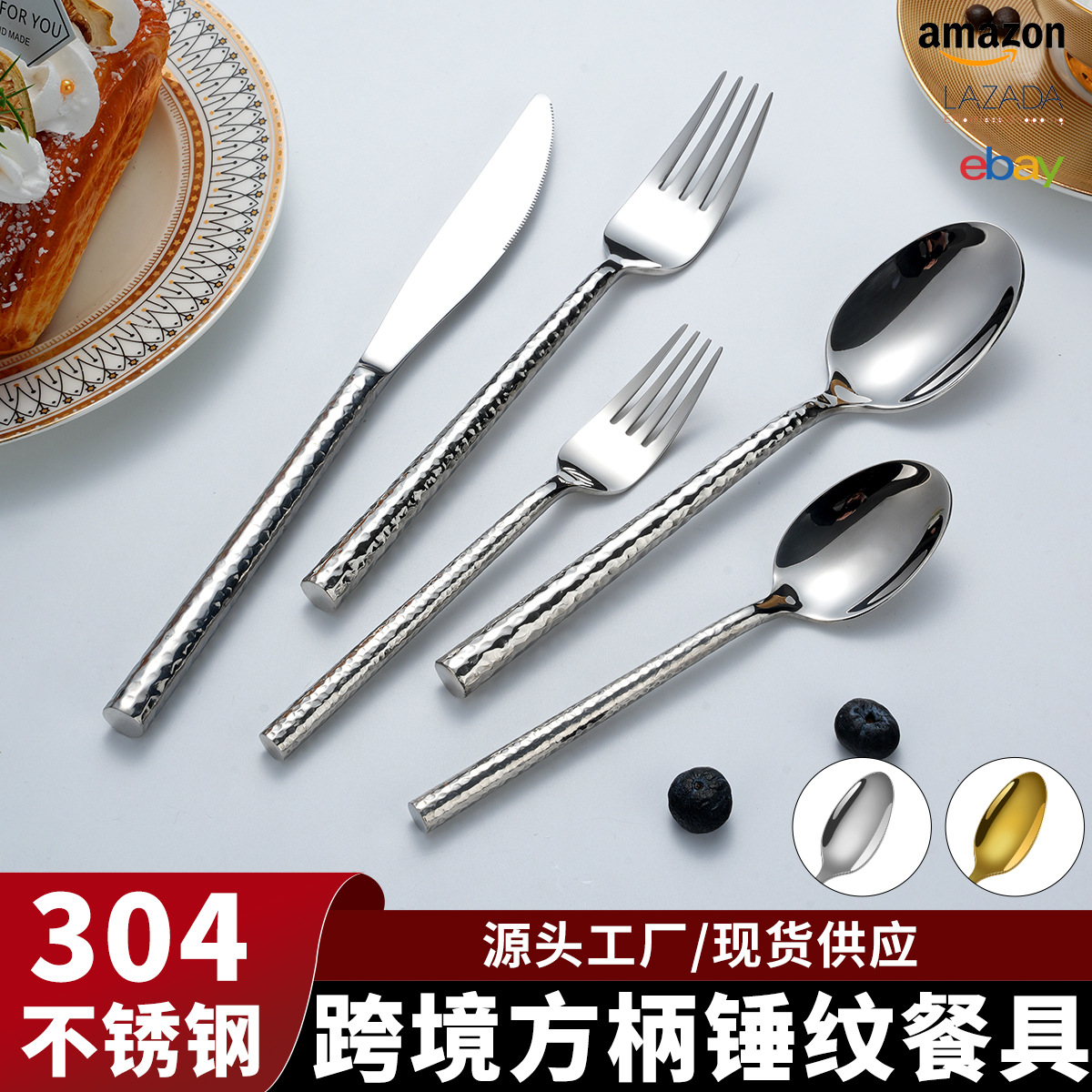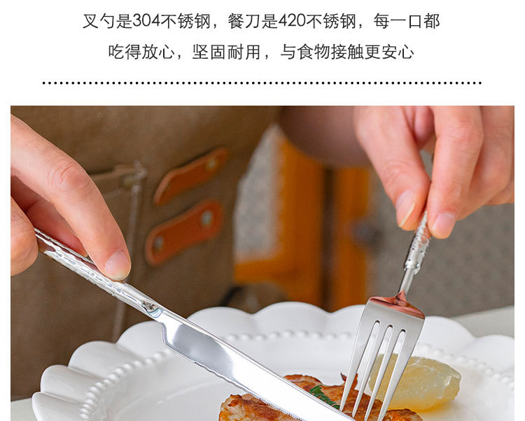 ハンマーポイント洋食ナイフフォーク食器セット家庭用フランス304ステンレス製ステーキナイフ皿フォークスプーン3点セット