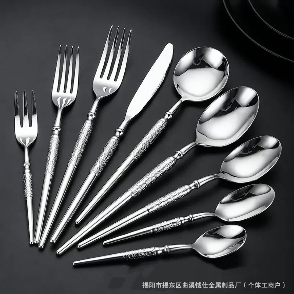欧式树纹不锈钢刀叉勺组合高级感家用西餐刀叉勺精致调羹牛排叉子