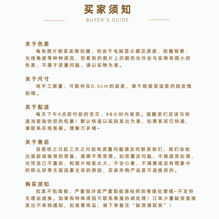 尊敬的新老用户,春节将至,为不耽误您春节使用,建议您尽早下单!本店新年假期放假时间为2025年01月7日-2025年02月04日 二、关于发货 因客服回家过年,故春节期间只接单不发货,所有的产品将在春节结束后,02月05日按时间先后顺序陆续安排发货,在此期间有任何问题请留言,节后我们会给您处理,给您带来的不便敬请谅解。 |