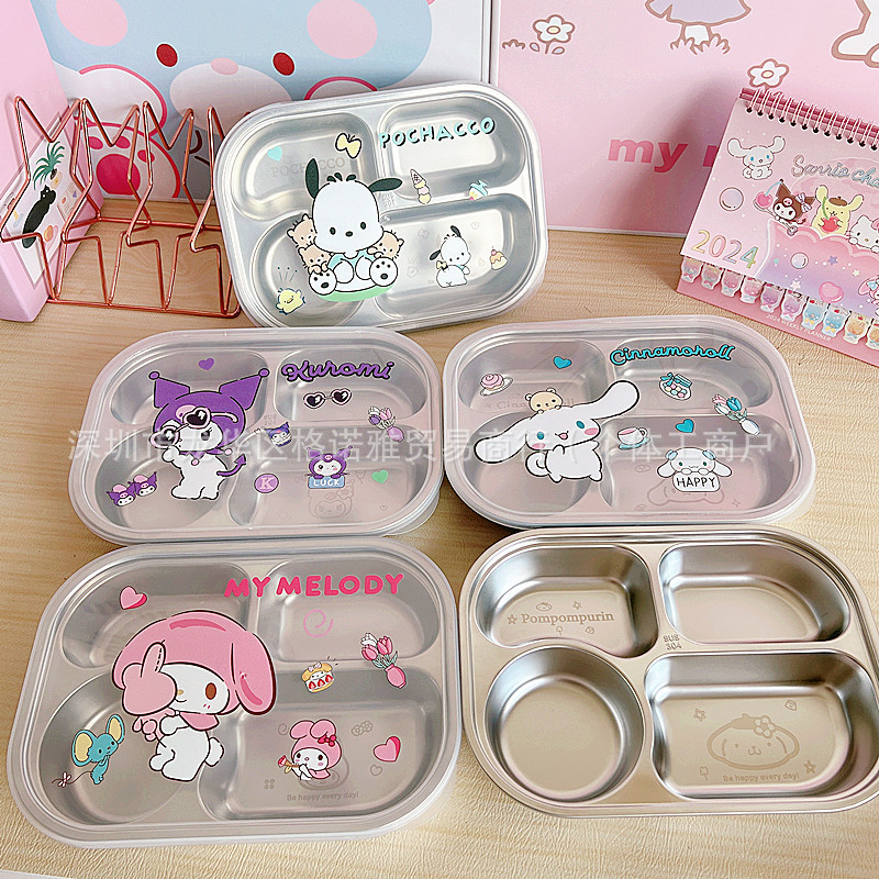 漫画かわいい304ステンレスの食事皿蓋付き弁当箱幼稚園学生児童食堂食事分格皿