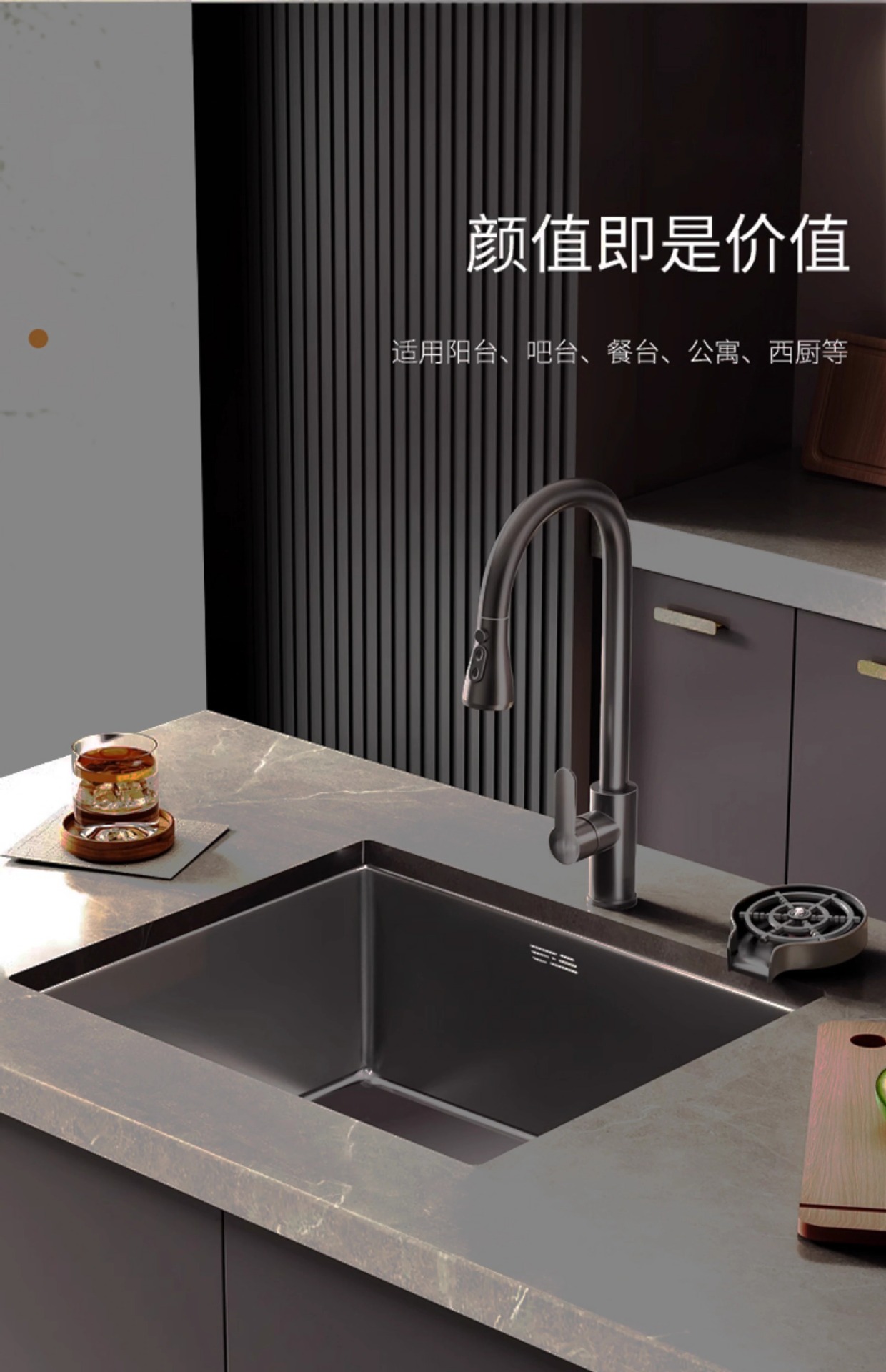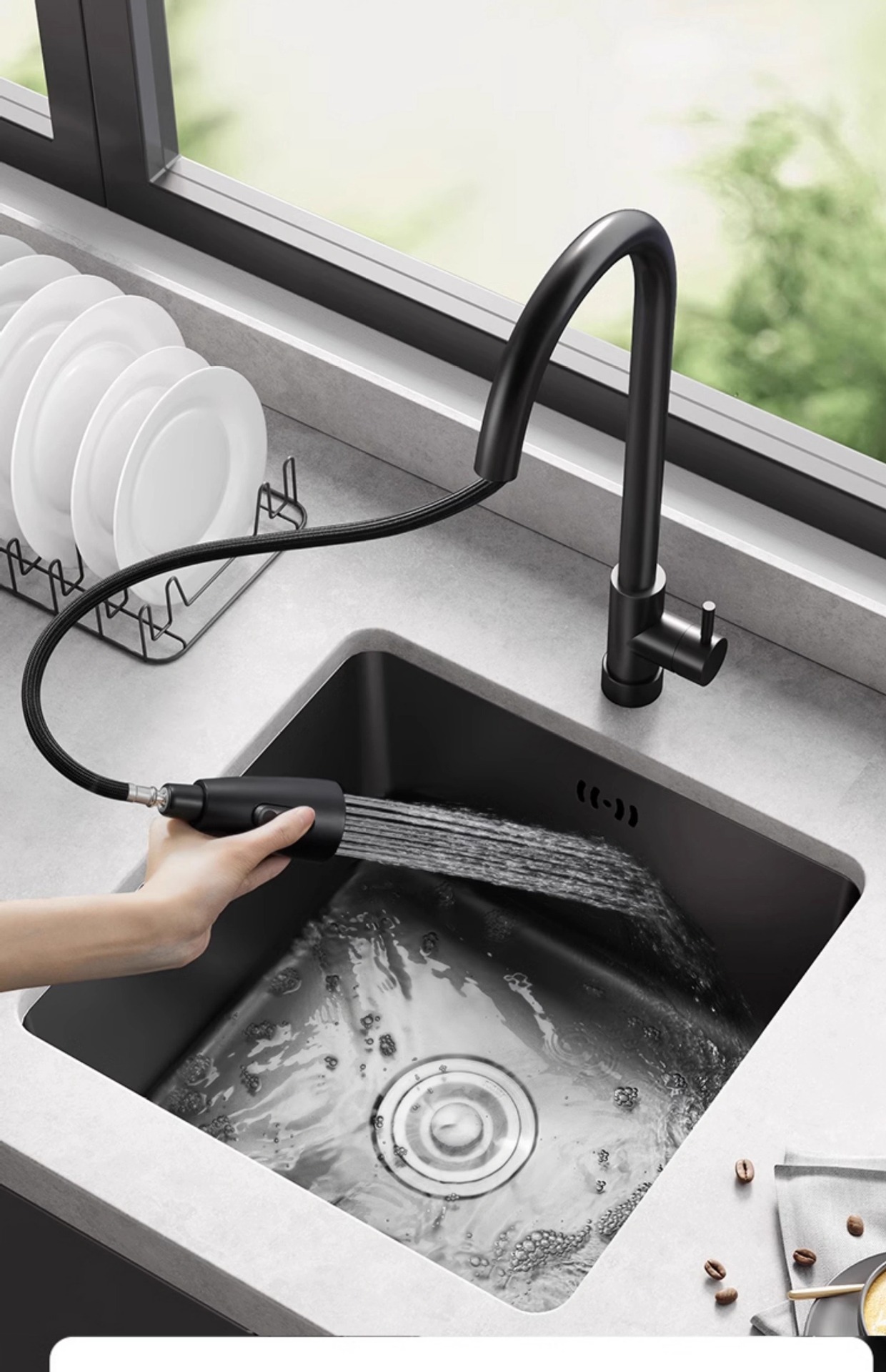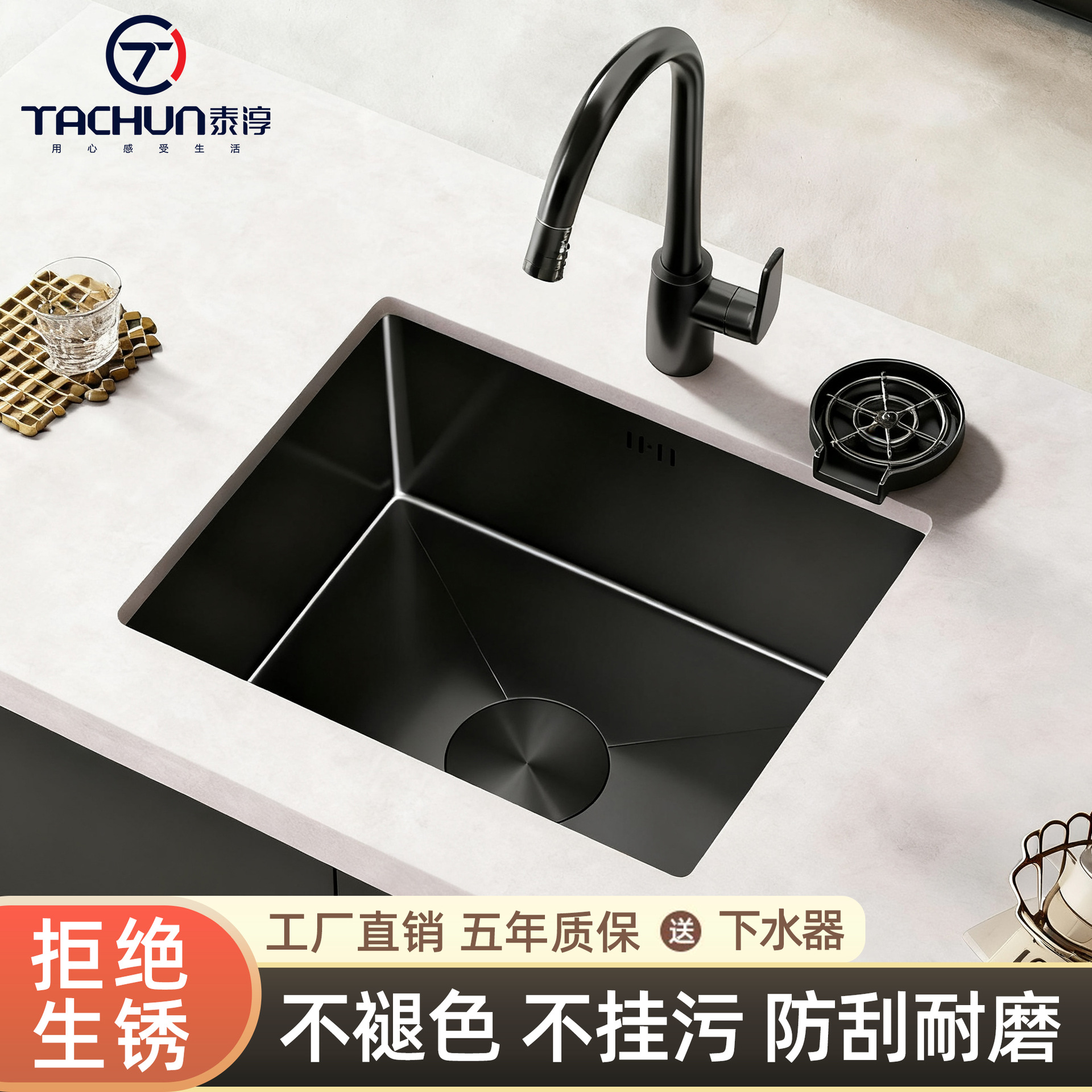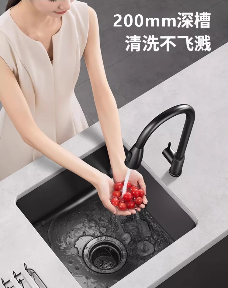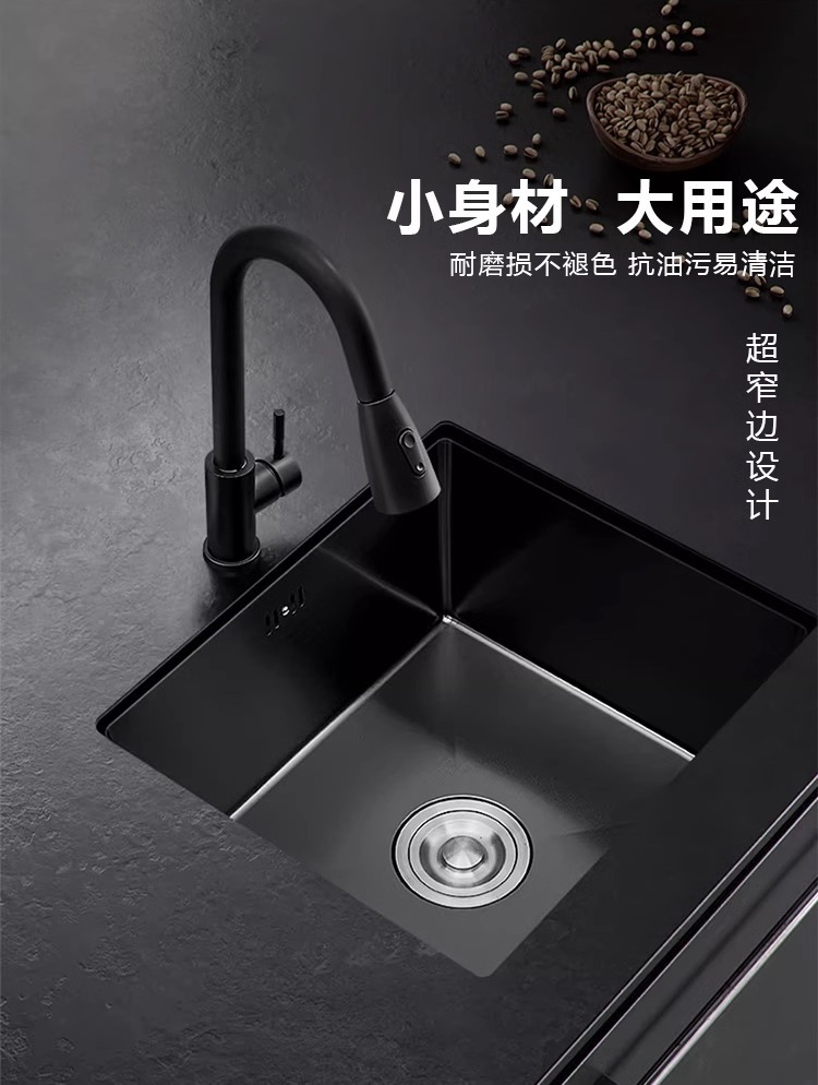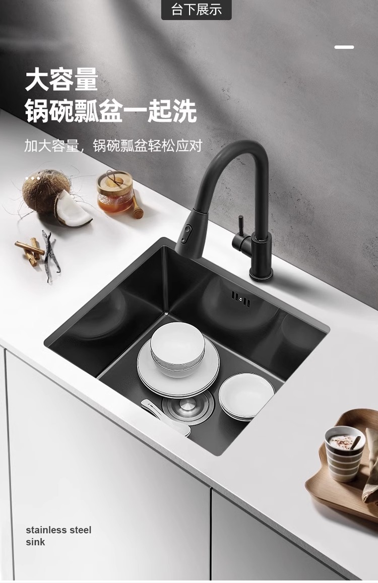 洗菜台面单槽黑色纳米一体手工台下盆 sus304厨房不锈钢水槽