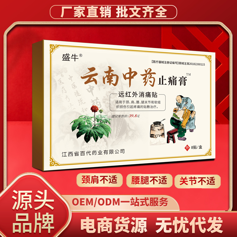 本物の盛牛雲南漢方百痛膏薬パッチ、露店やライブ配信で入手可能、ドロップシッピング対応