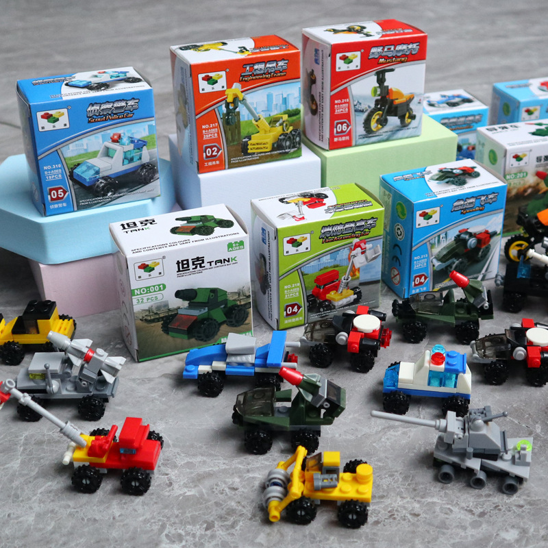 子供の積み木のおもちゃの男の子の益智の小さい粒子は車の赤ちゃんの工事の車の掘削機の消防車のセットをつづり合わせます。
