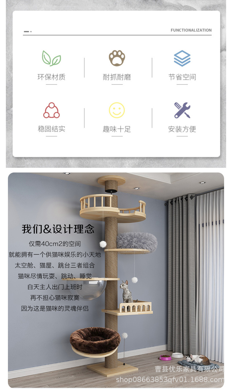 顶天立地猫爬架通天柱实木小户型太空舱猫咪攀爬架一体diy多功能