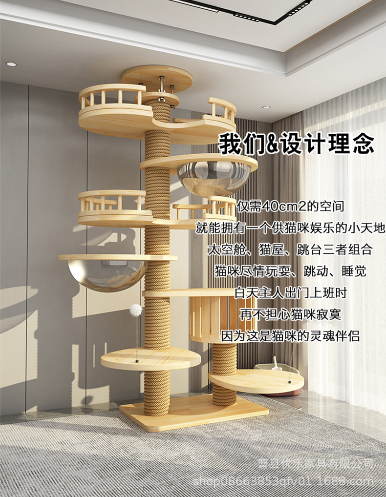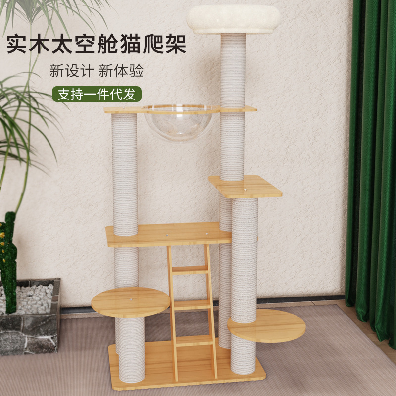 猫クライミングフレームメーカー、猫の巣一体型無垢材猫フレーム、猫スクラッチボード、耐摩耗性、脱落しないおもちゃ、スペースカプセル、ワンピース