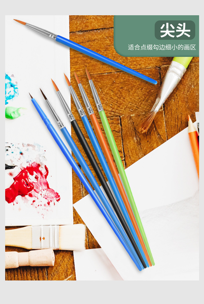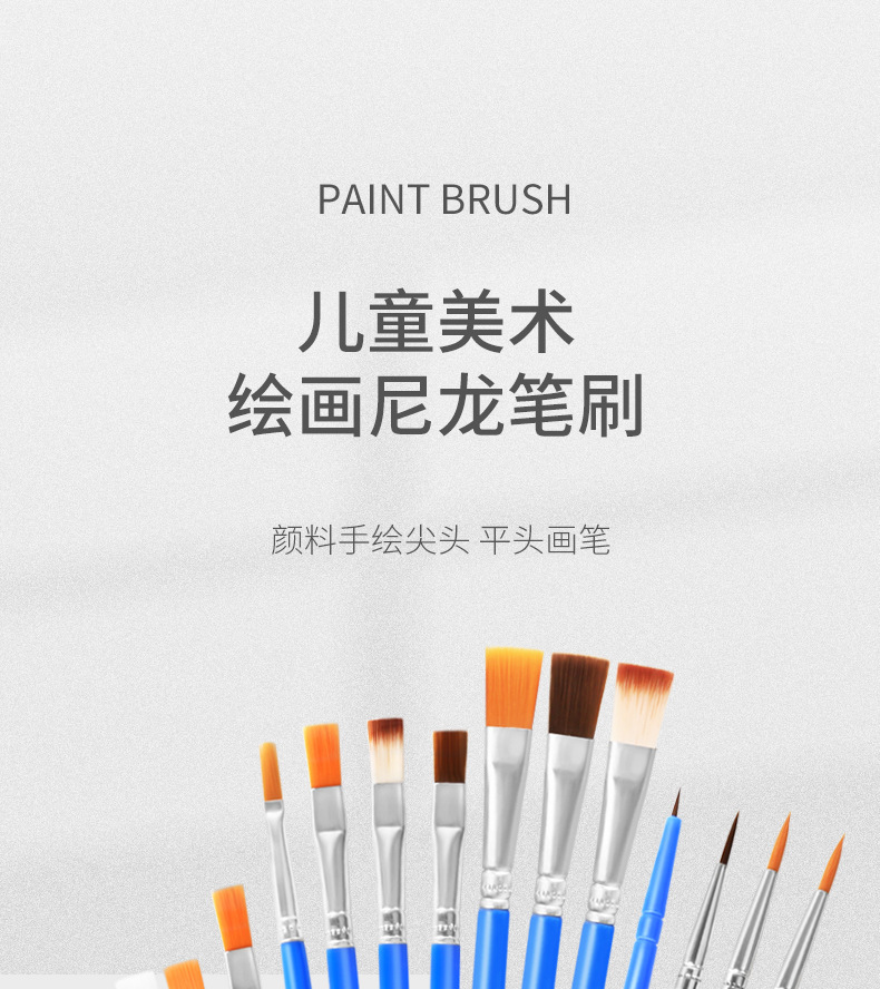 青い平頭ナイロン絵筆デジタル油絵子供絵画排筆石膏人形diy顔料線筆