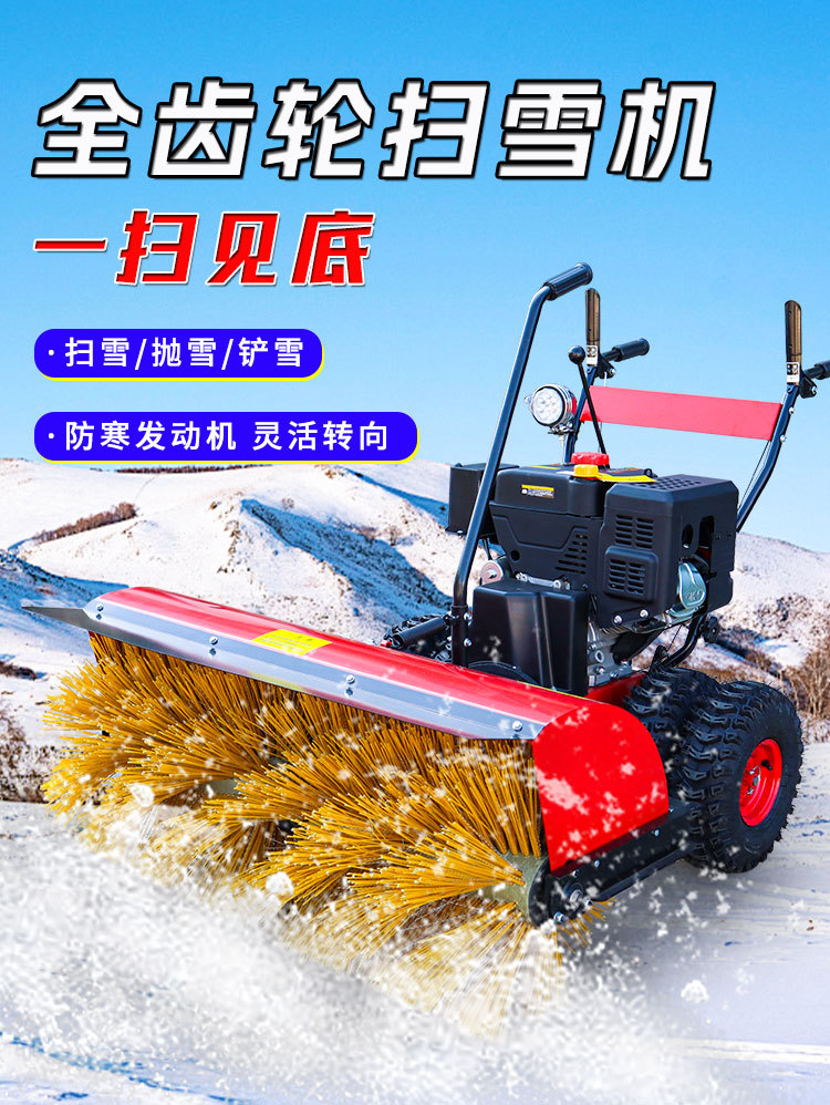 手推式全齿轮扫雪机工厂物业环卫清除雪滚刷汽油抛雪机除雪神器