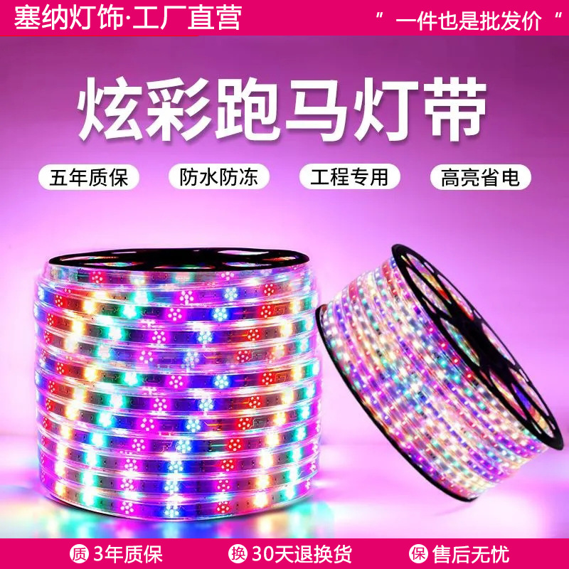 イルミネーション走馬灯流水灯帯屋外防水ネオン屋外七彩変色看板フラッシュledソフトライト