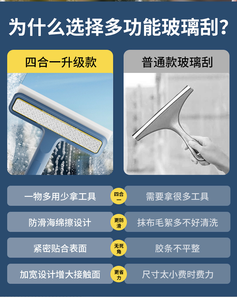 四合一拭きガラス神器家庭用ガラス両面取り外し可能網戸ブラシスポンジブラシ清潔家政専用