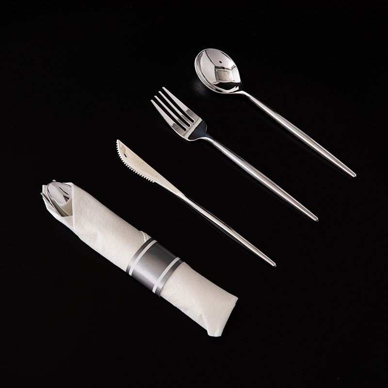 使い捨てプラスチックナイフフォークスプーンメッキ真空コーティングシンプルで衛生的な高透硬ナイフフォークスプーン