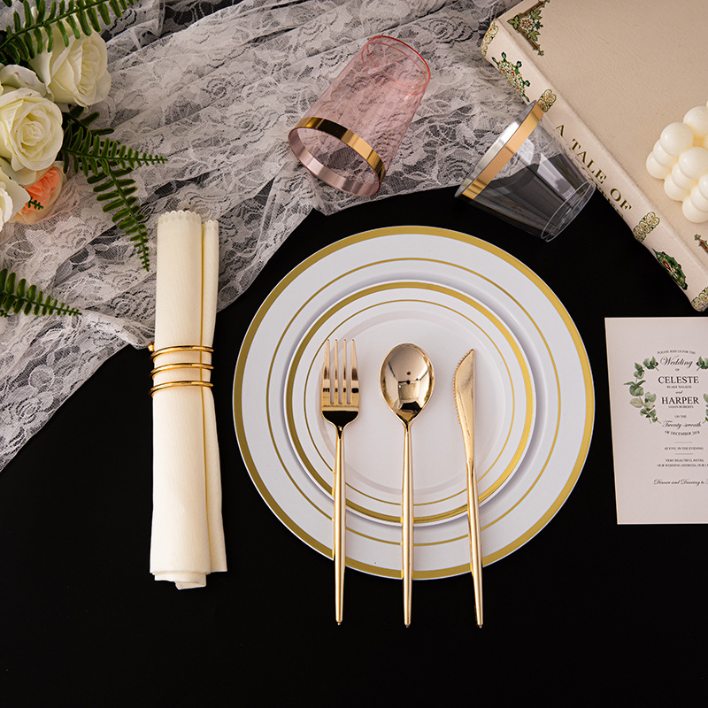 一件代発送 クロスボーダー PSプラスチック UVメッキ ゴールド使い捨てカトラリー(ナイフ・フォーク・スプーン) 誕生日・結婚式 クロスボーダー