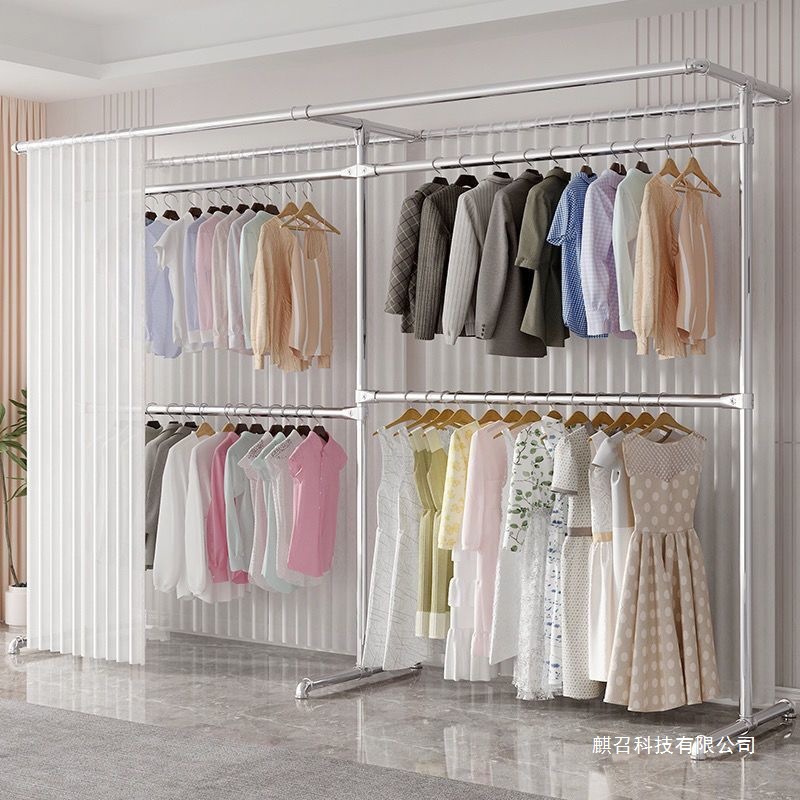 镀锌加厚钢管晾衣架落地立式室内新款卧室阳台简易挂帘双层挂衣架