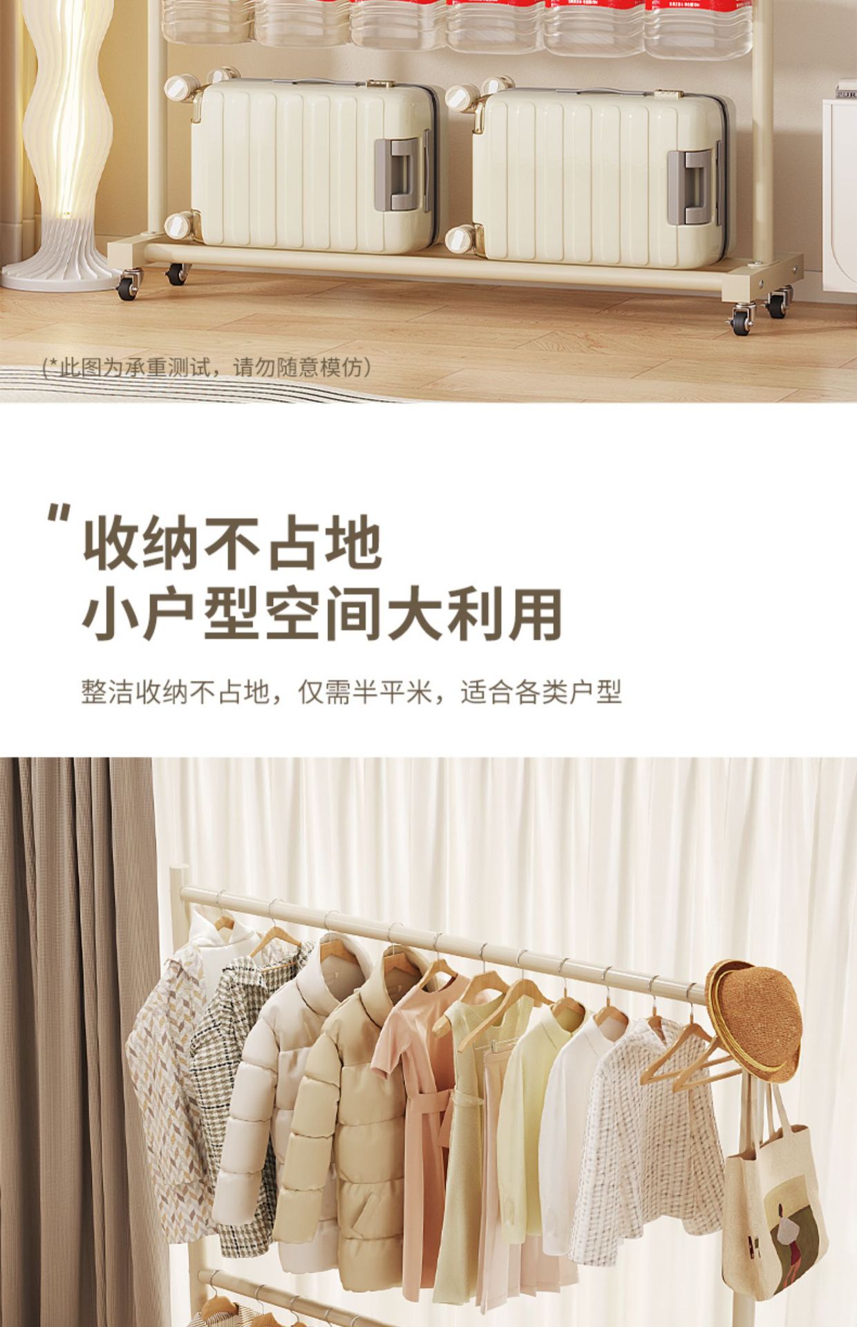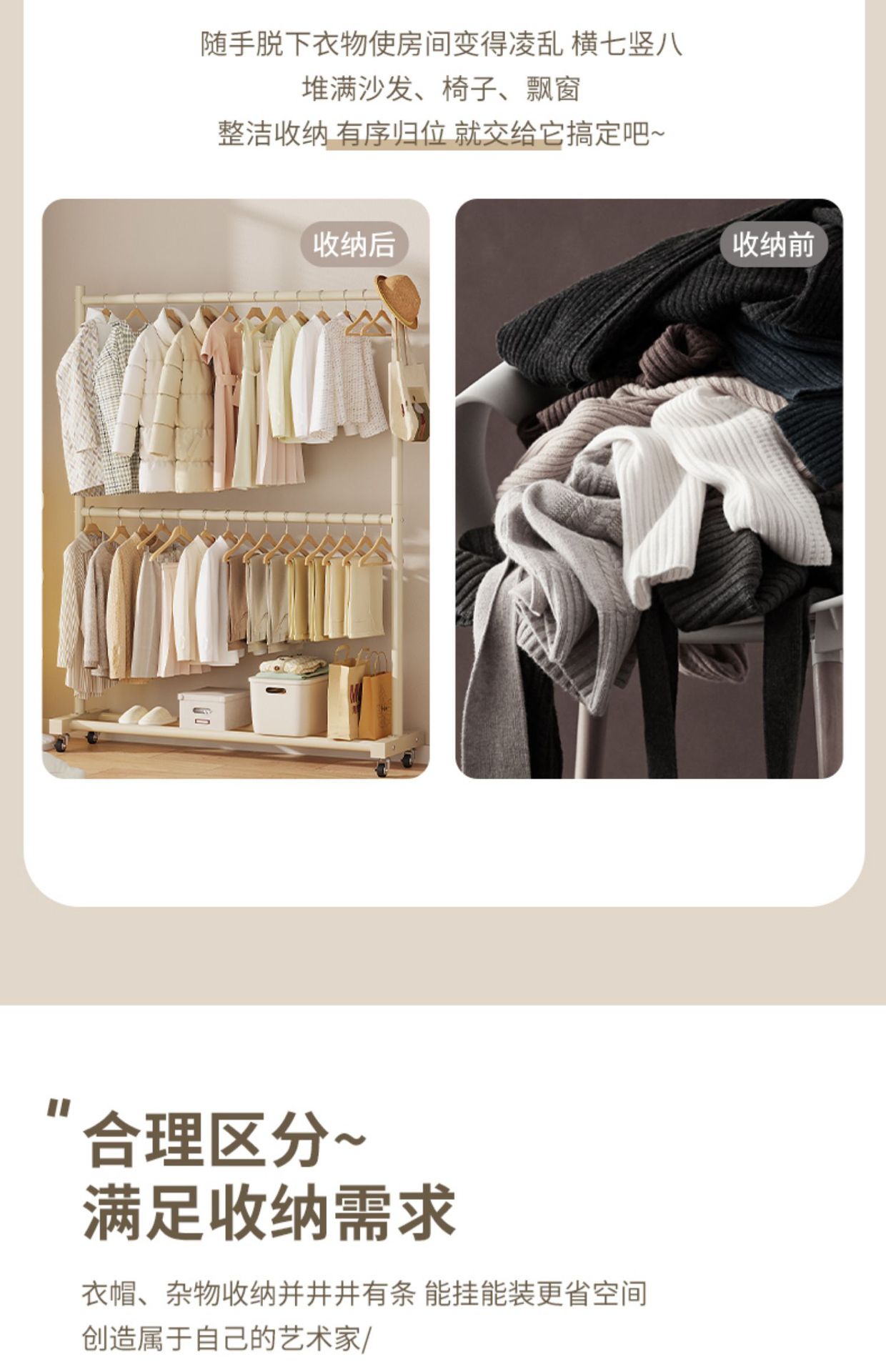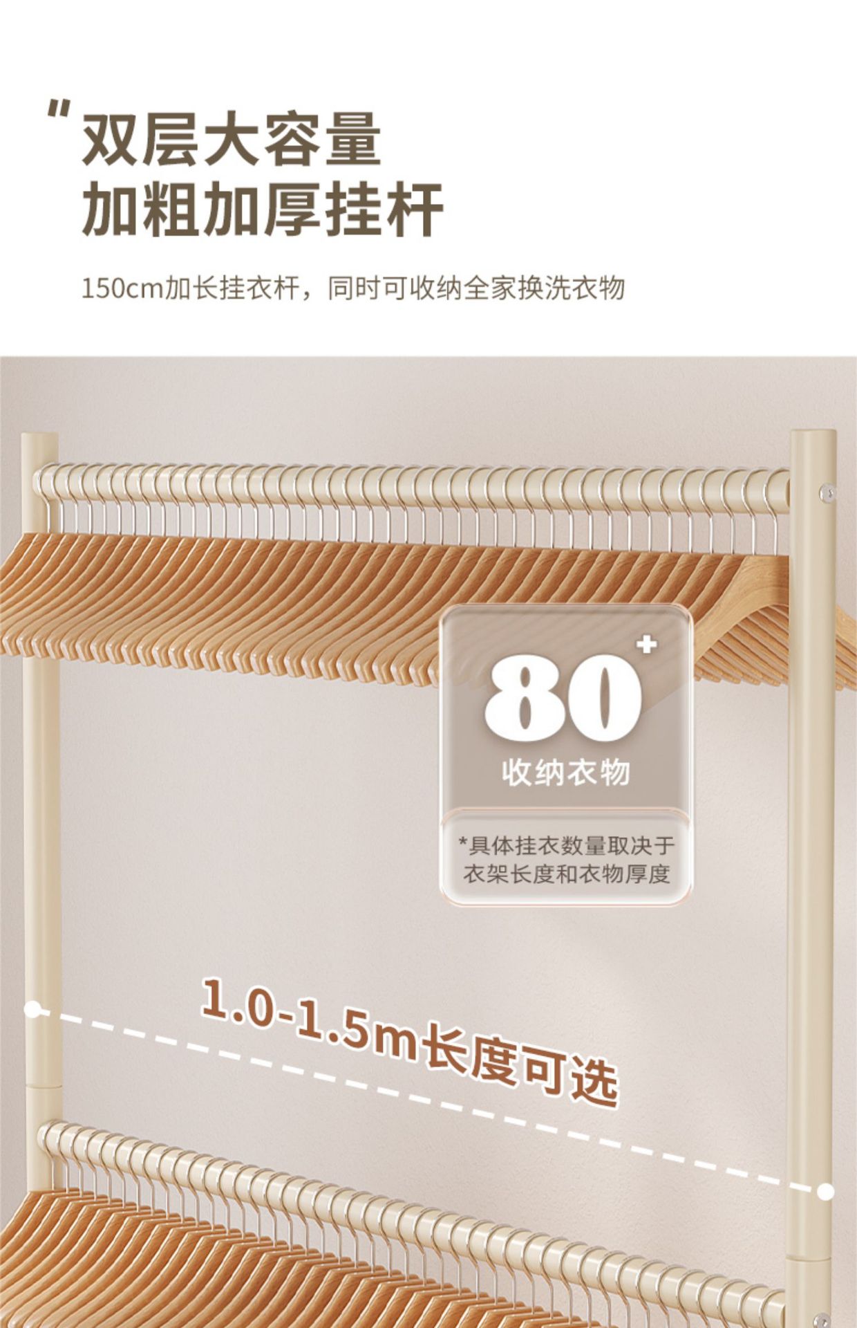 クリーム風二重寝室ハンガー着地家庭用ネットレッド簡易フードラック収納置物掛け衣類ラック