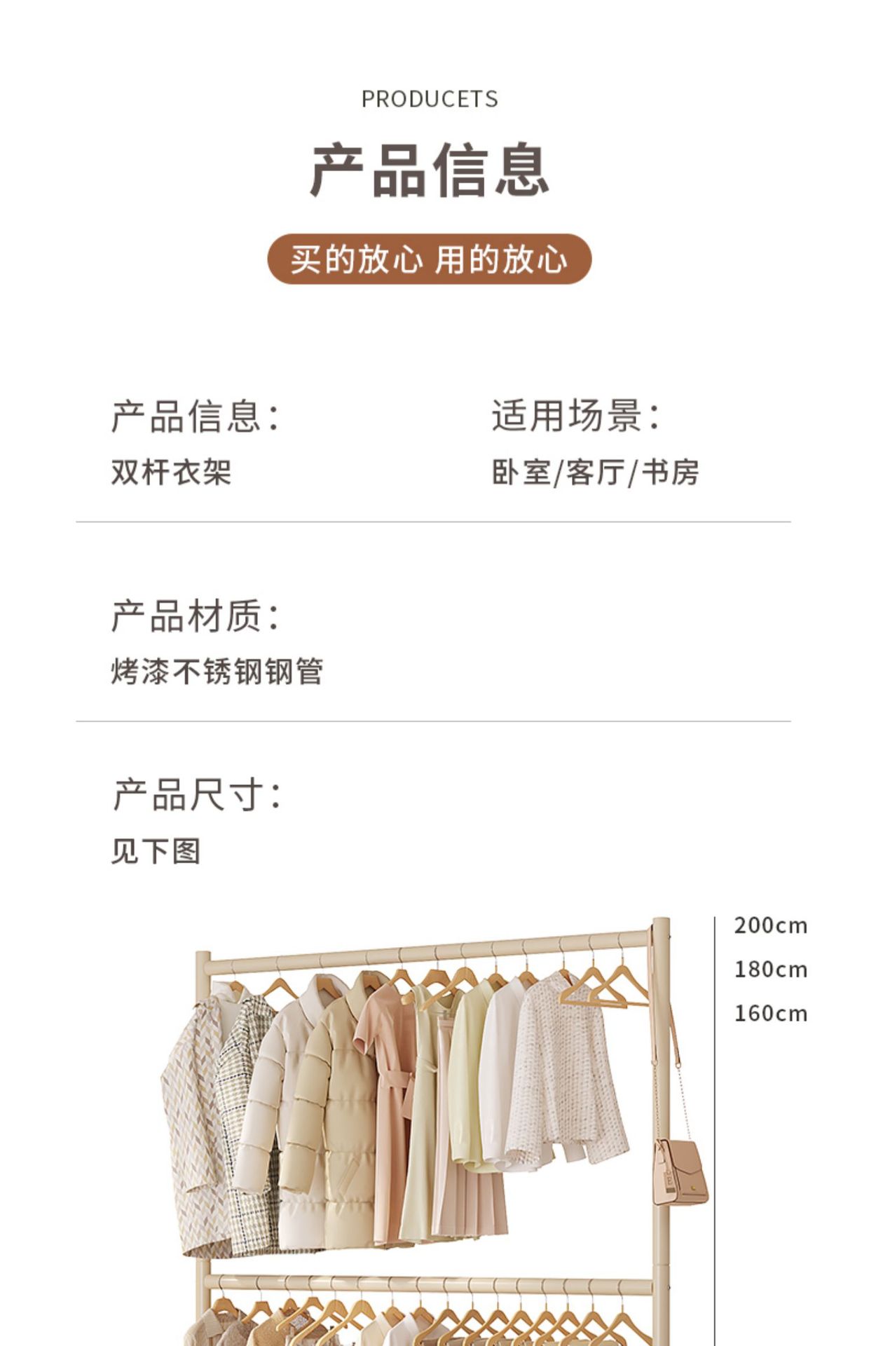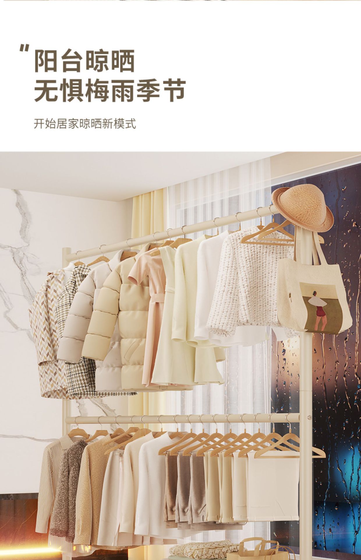 クリームスタイルの二層寝室物干しラック床置き家庭用インターネットセレブシンプルなコートラック収納収納洋服ラック