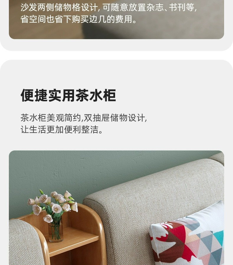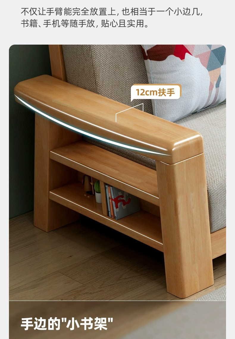 中国式実木ソファー客間現代シンプル布芸ソファーベッド冬夏両用小戸型貯蔵物家庭用家具