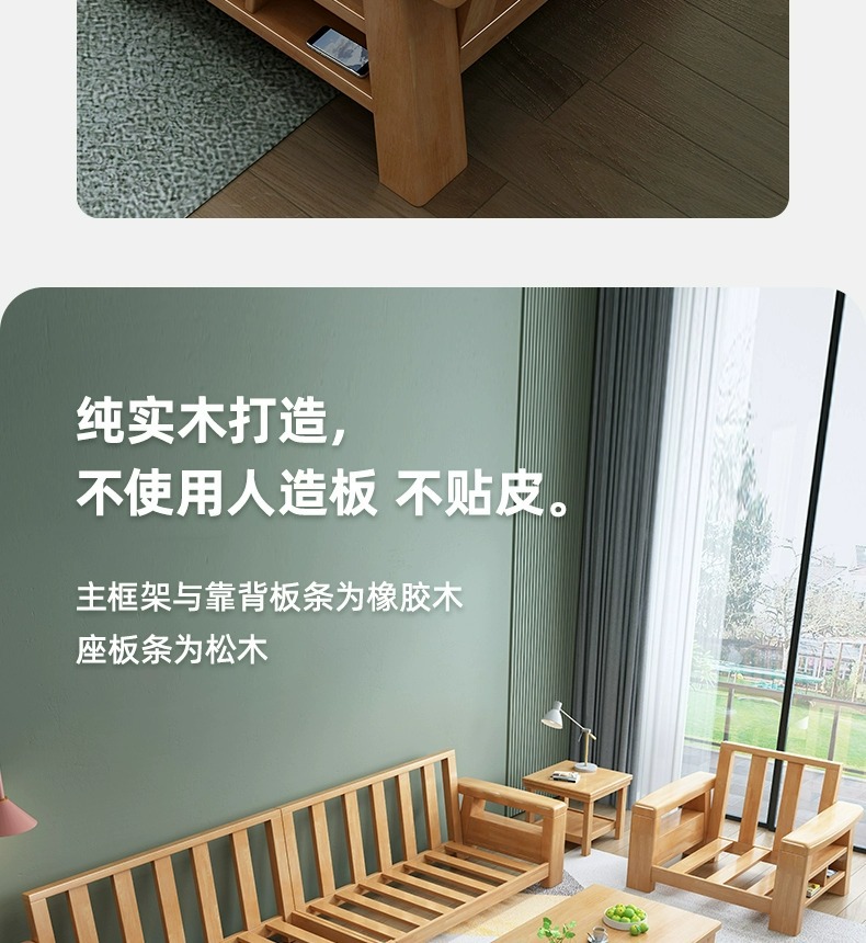 全实木沙发客厅现代简约轻奢原木小户型2026新款沙发床家用布艺