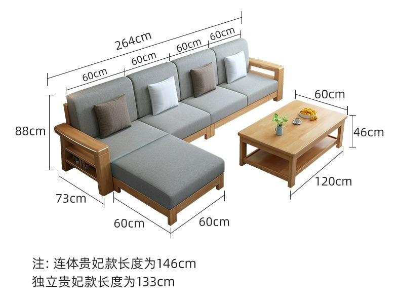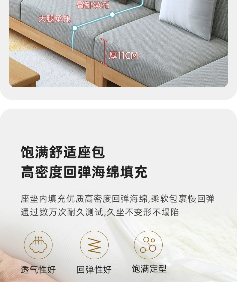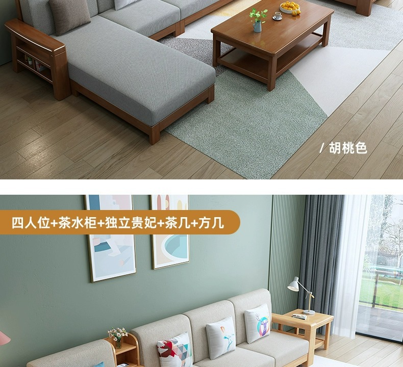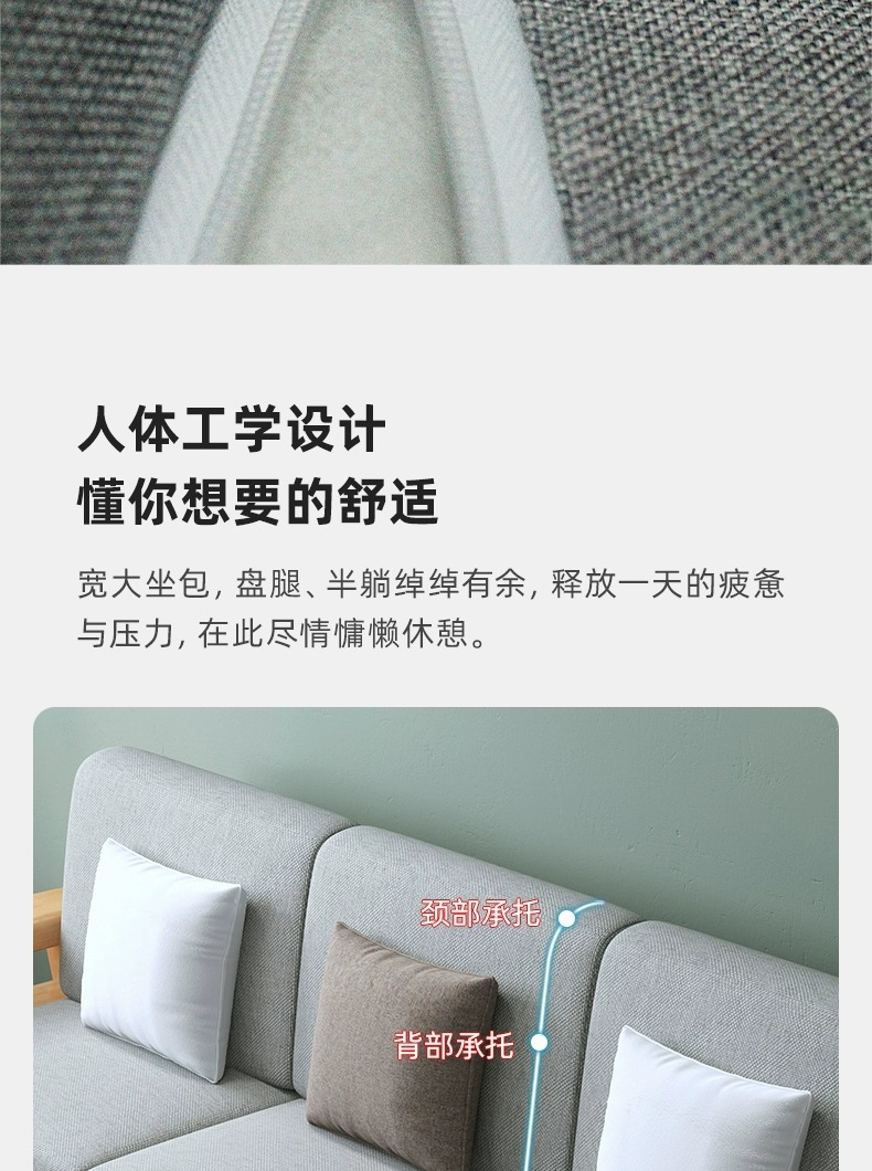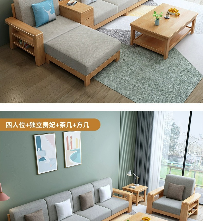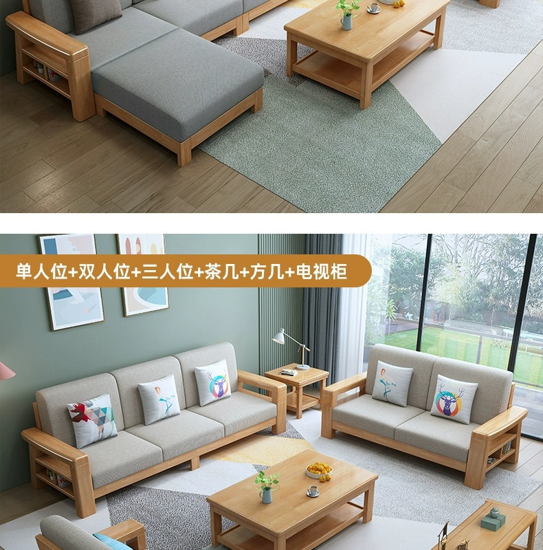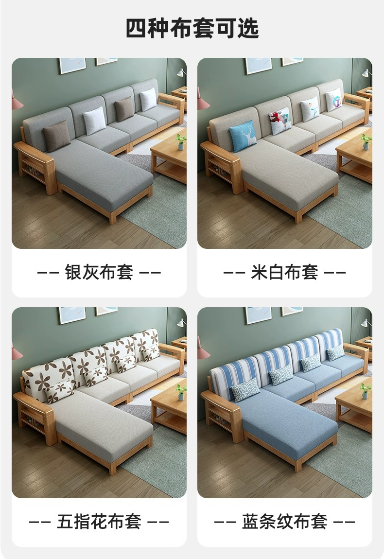 北欧無垢材ソファリビングルーム家具組み合わせモダンシンプルコーナーロングソファ大小サイズ冬と夏のデュアルユースソファ