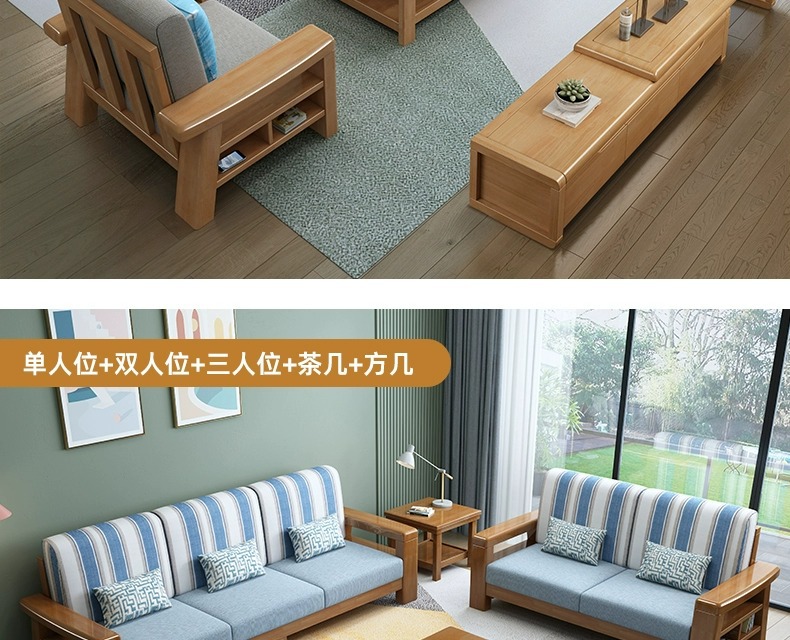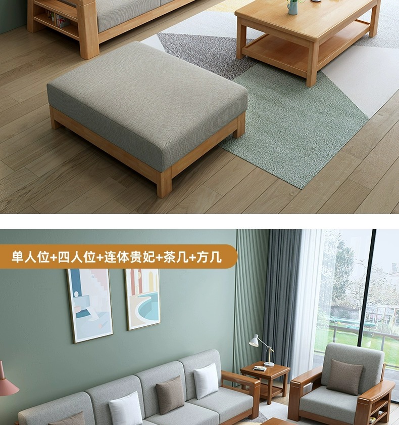 北欧の実木ソファー現代のシンプルな小戸型客間家具の組み合わせ家庭用クリーム風和式布芸ソファー