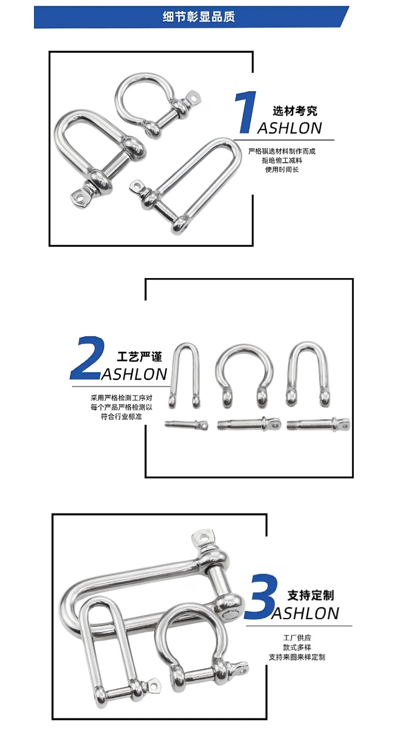 304不锈钢弓型卸扣 起重卸扣 弓形卸扣 高强度卸扣 链条扣 M4-M38