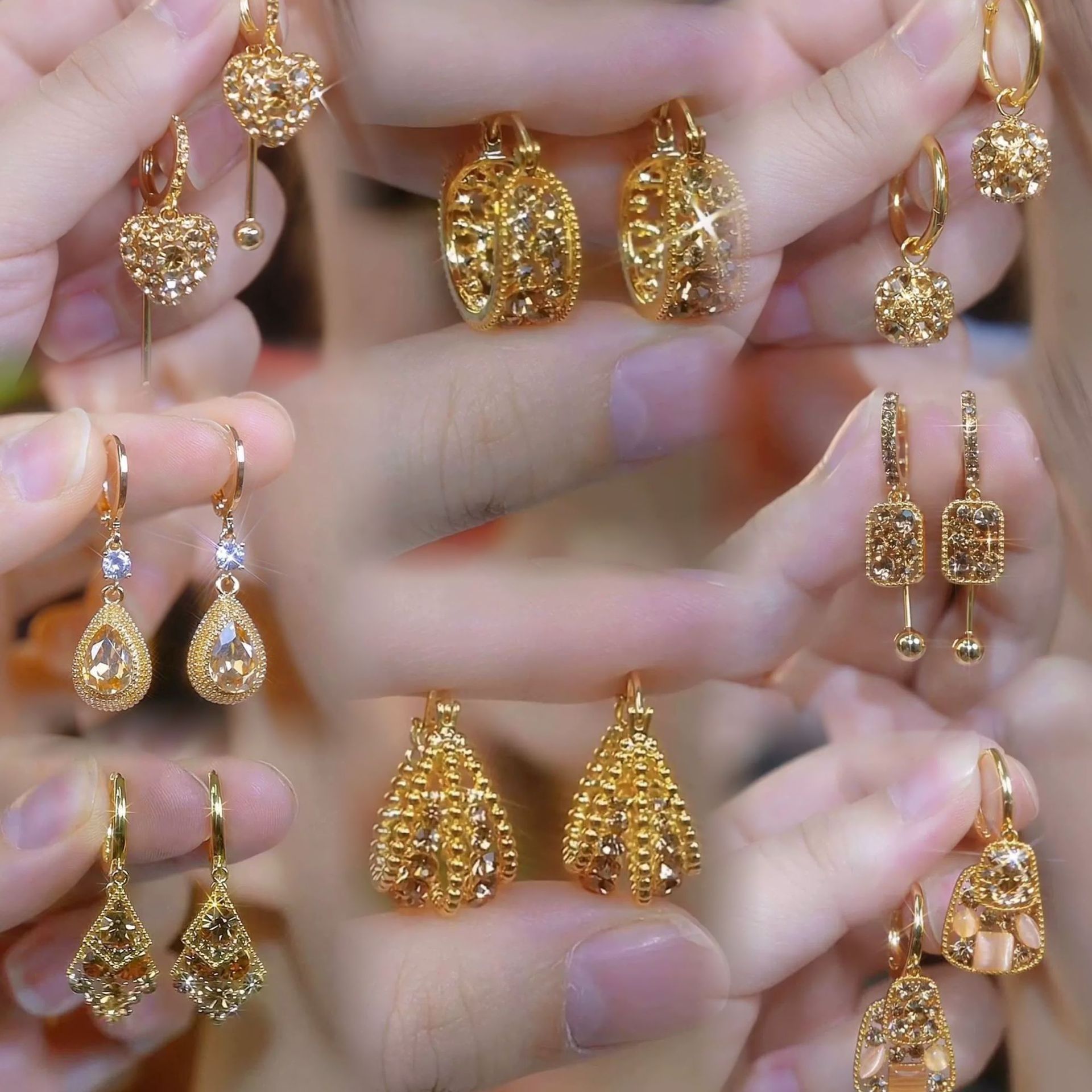 フラッシュドリル耳輪2023新型爆金小衆デザイン感高級感イヤリング軽贅沢気質秋冬耳飾りペンダント女