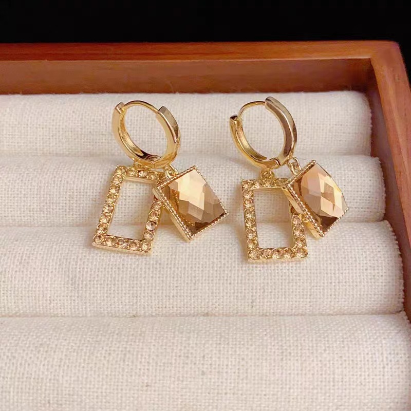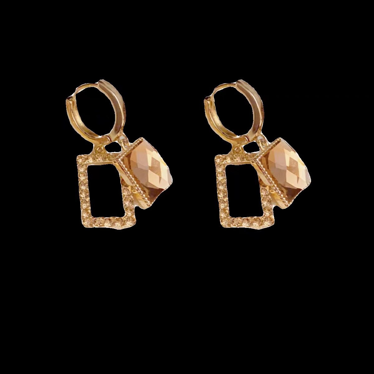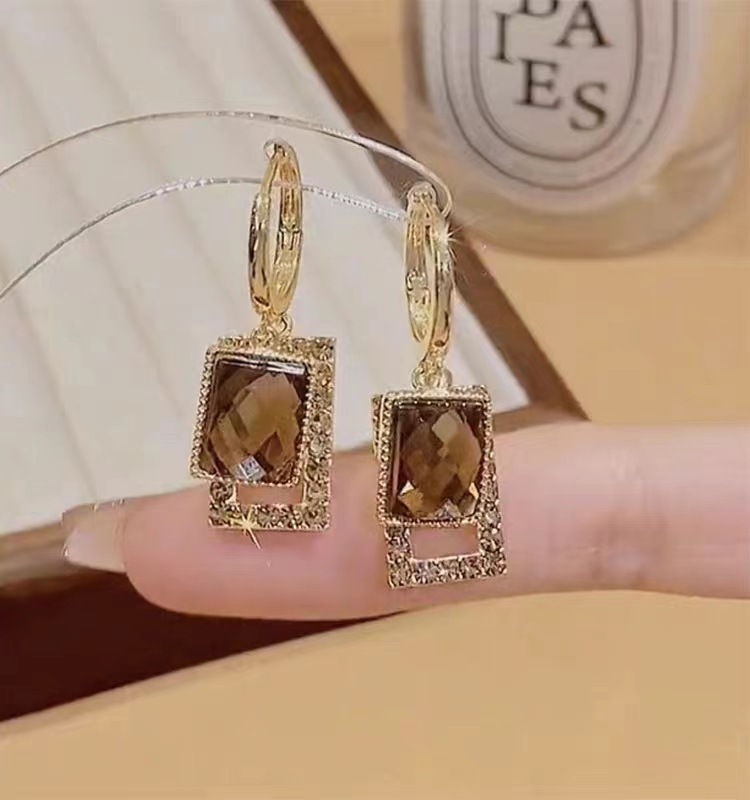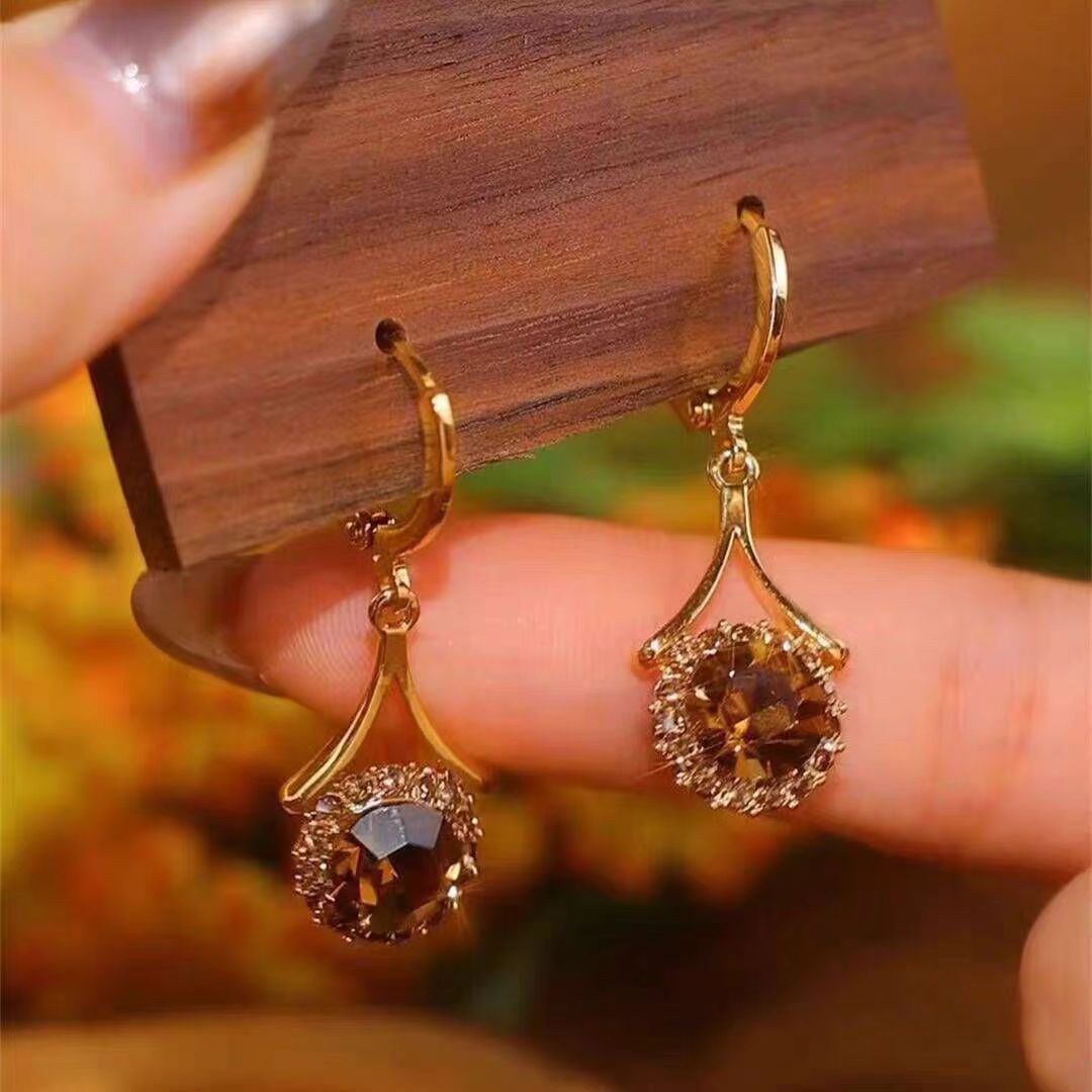 レトロ高級感キャラメル色の水晶の耳のボタンのフランス式の軽くて豪華なイヤリングの女性の大衆の設計の耳飾りの新型の潮